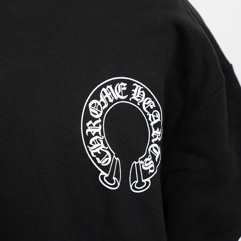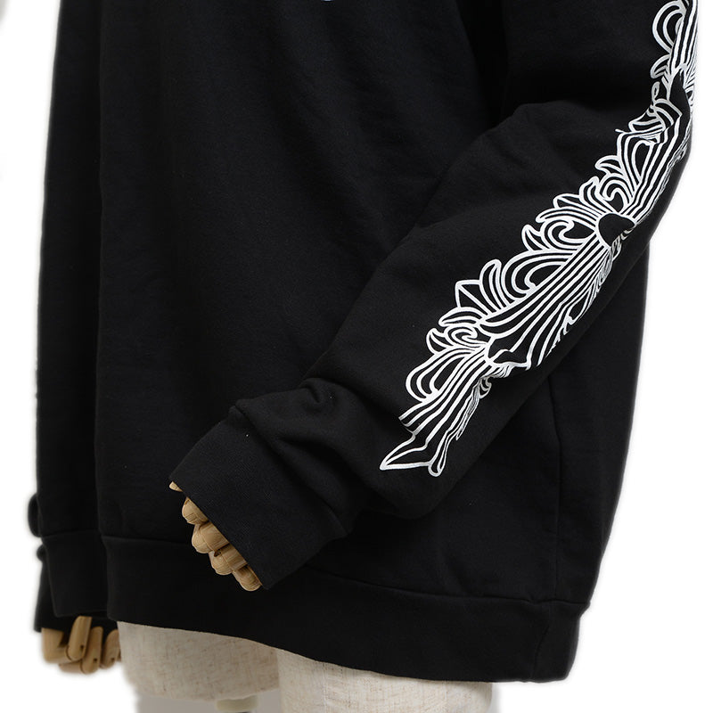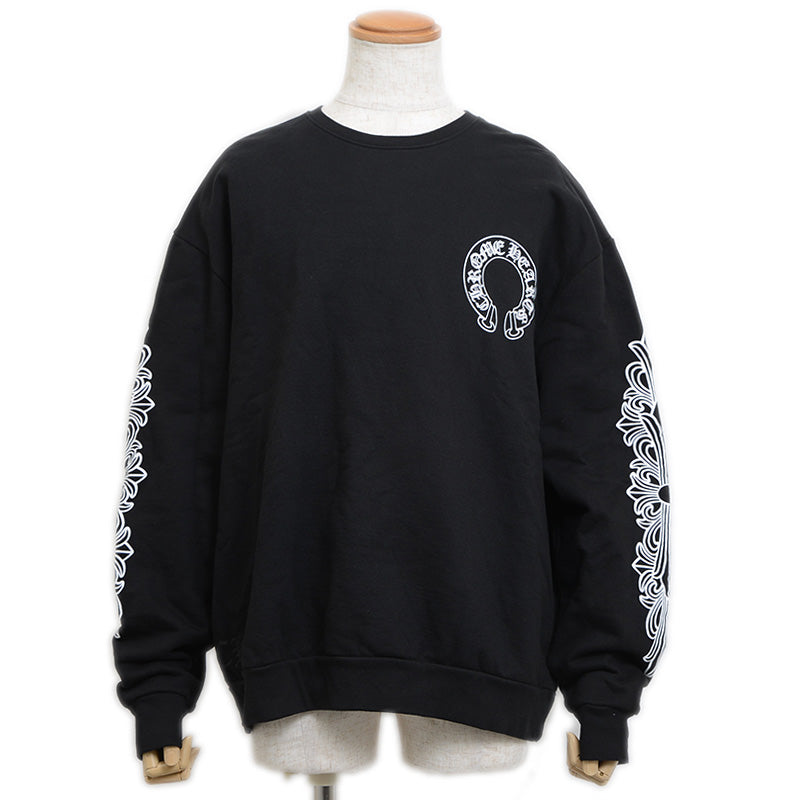 フローラルクロス ホースシュー クルーネック スウェット コットン ブラック Lサイズ スウェット