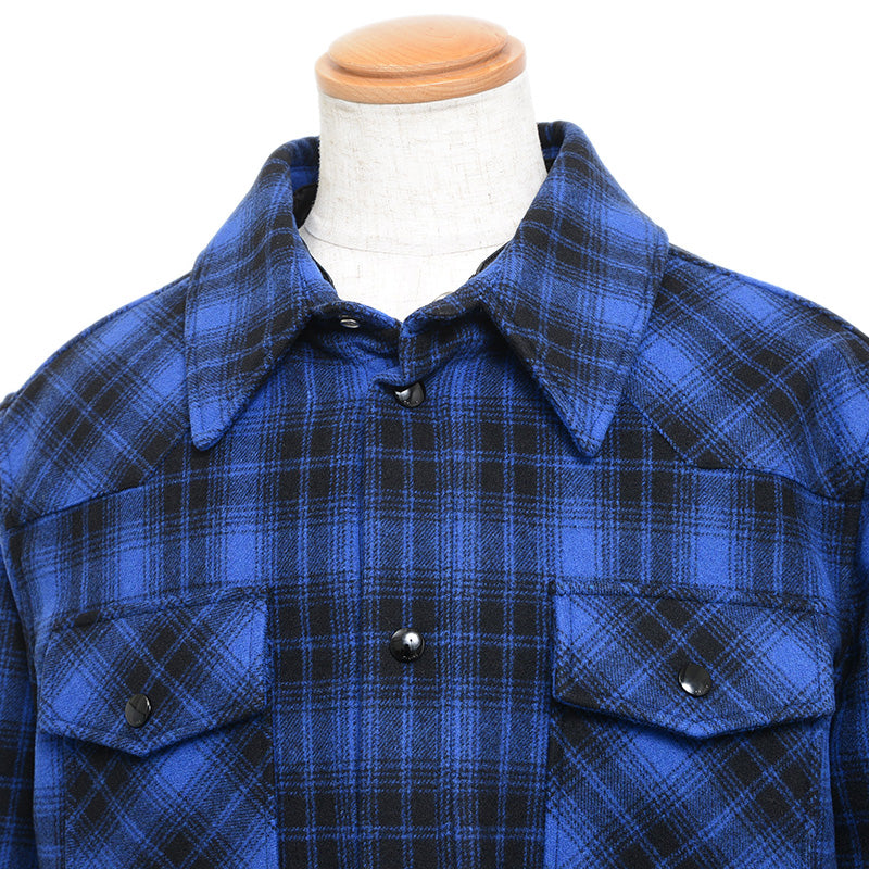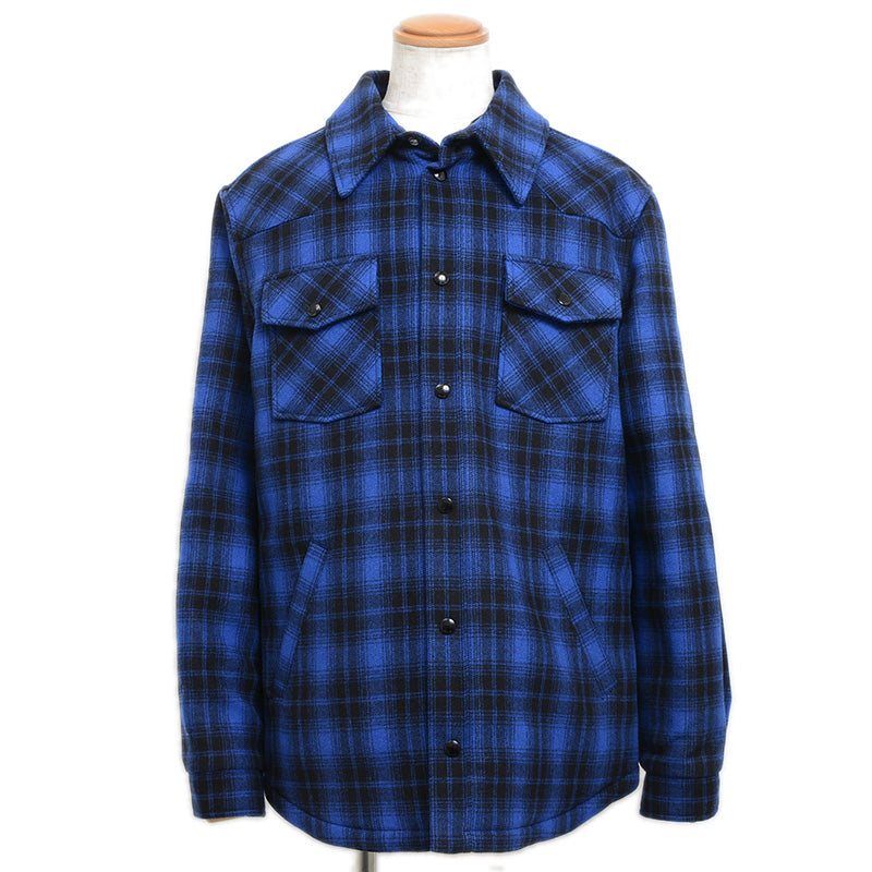 チェックフランネルシャツブルゾン ウール混 ブルー/ブラック メンズ 2W410994R #50 ジャケット
