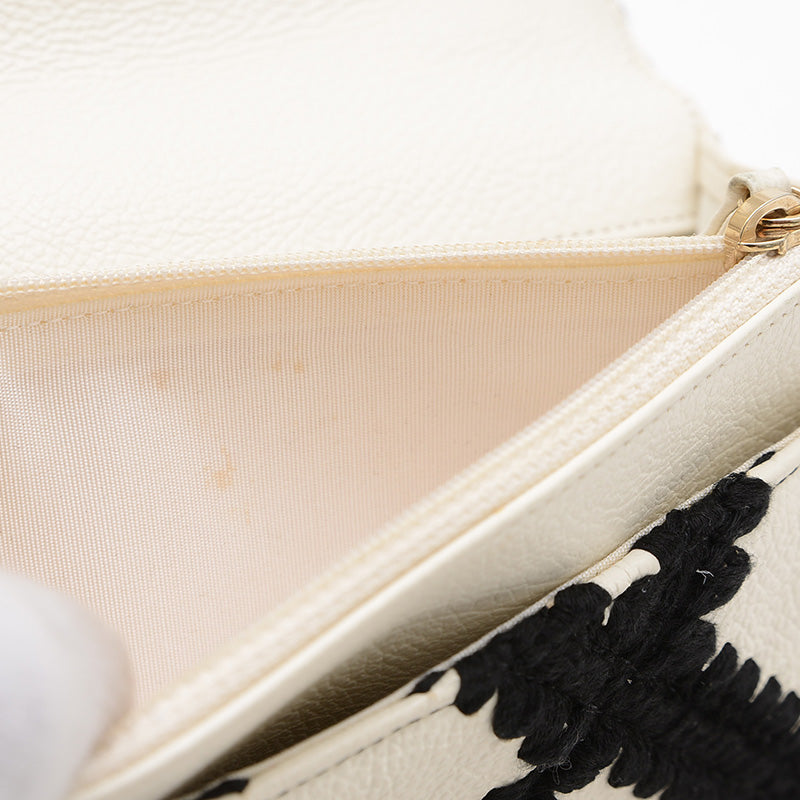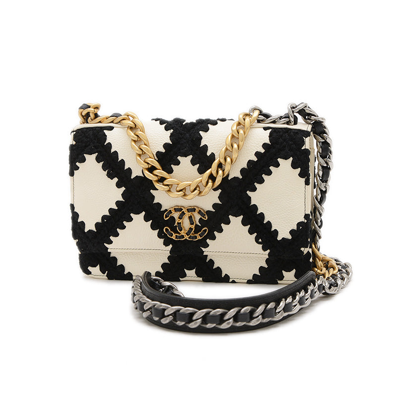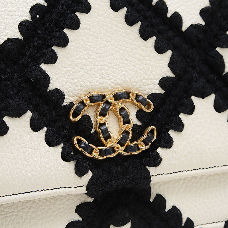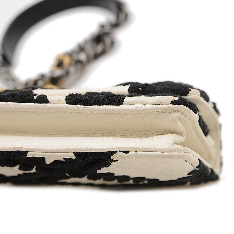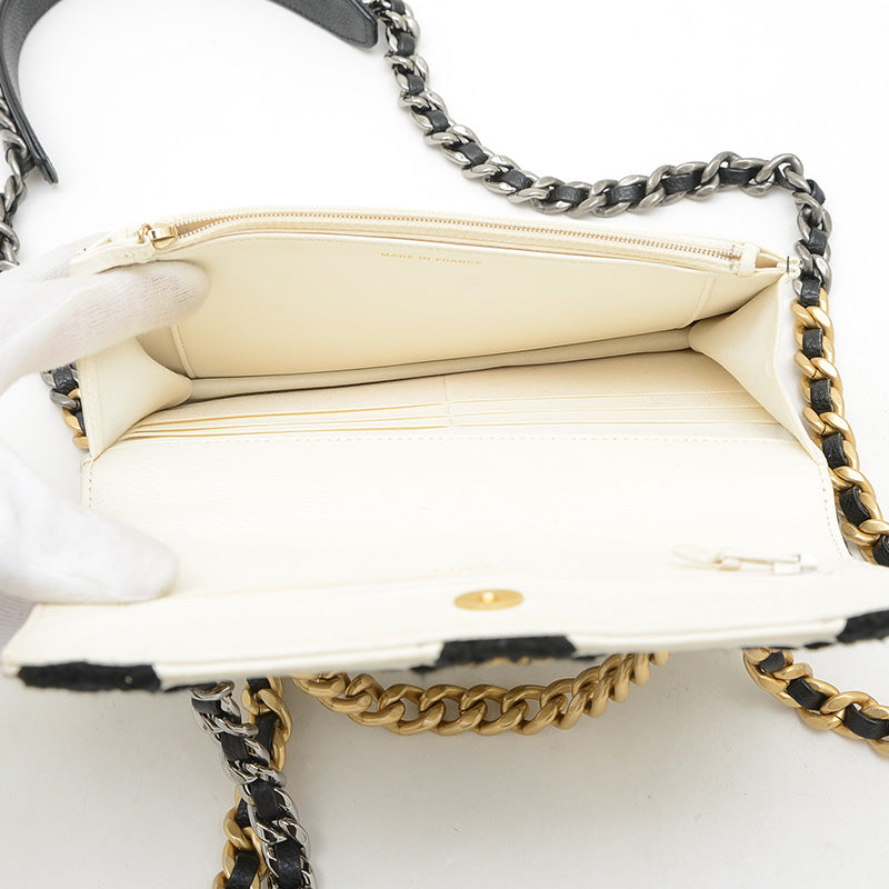 シャネル19 チェーンウォレット レザー/コットン ホワイト/ブラック AP3267 ショルダーバッグ