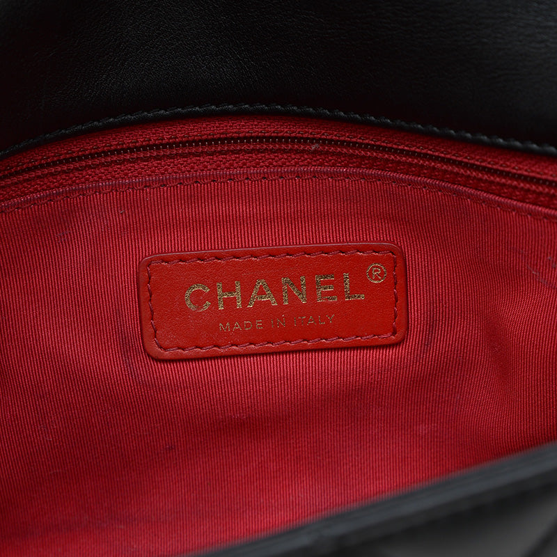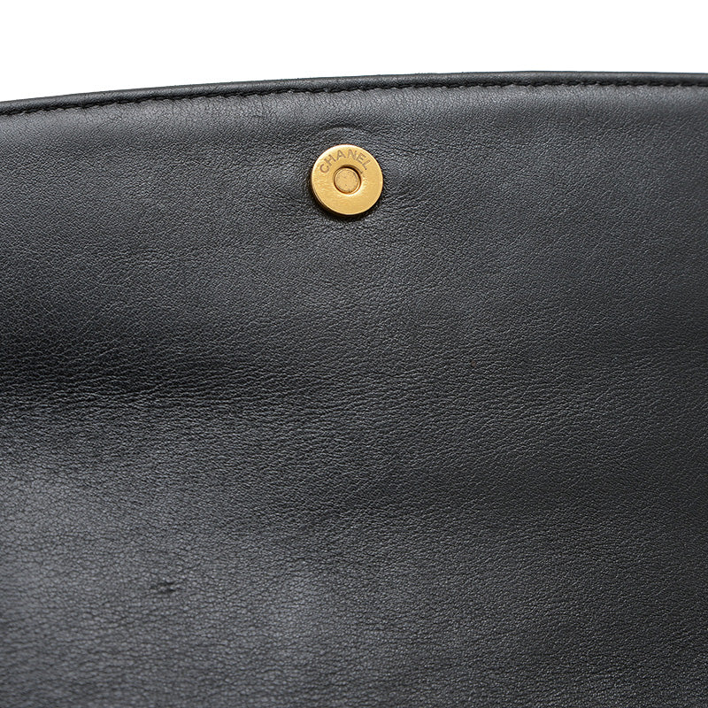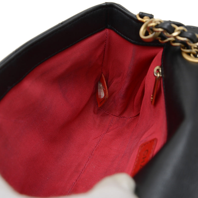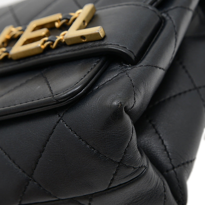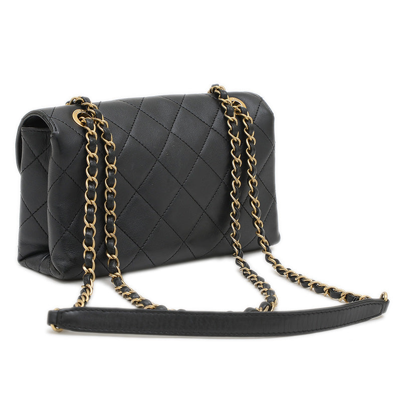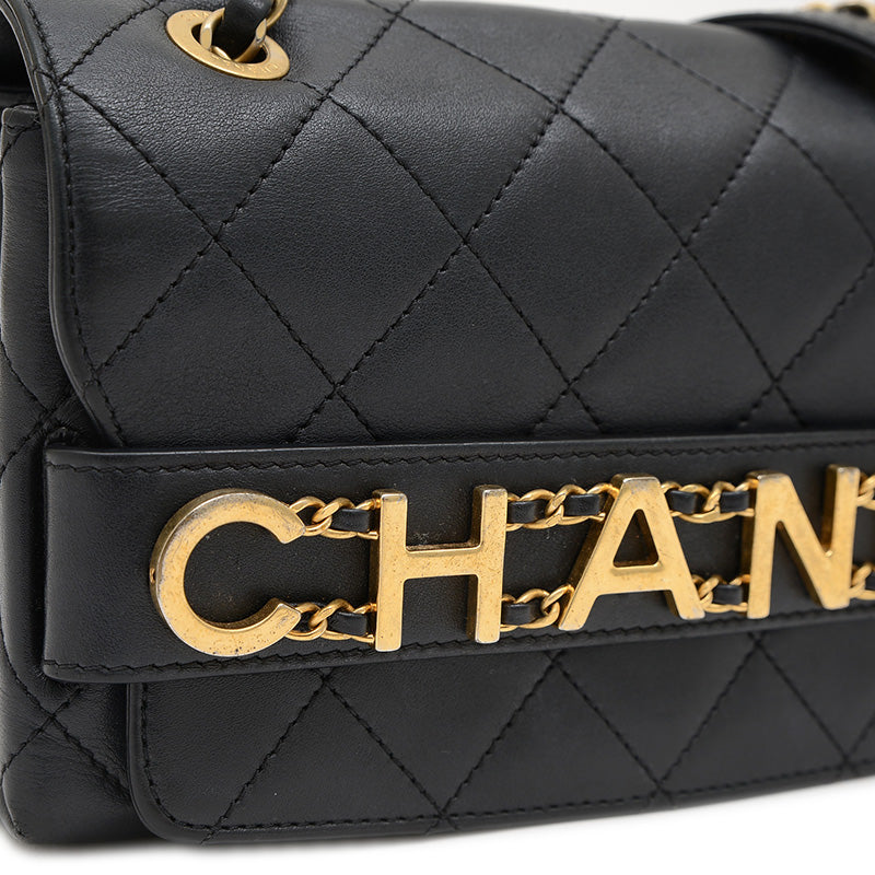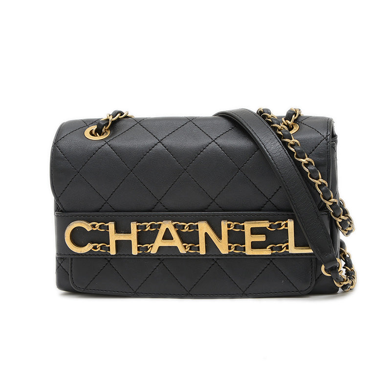 ふっくらとしたマトラッセステッチが施された、しなやかなラムスキン素材のショルダーバッグです。シックなブラックに、ゴールド金具とCHANELロゴが大胆にあしらわれ、エレガントなアクセントになっています。日常の必需品をスマートに収納できるサイズ感で、クラシックな魅力とモダンなデザインを兼ね備えた人気の逸品です。