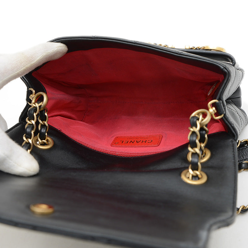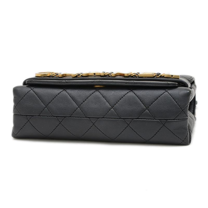マトラッセ ロゴ チェーンショルダー ラムスキン ブラック ゴールド金具 AS4190 ショルダーバッグ