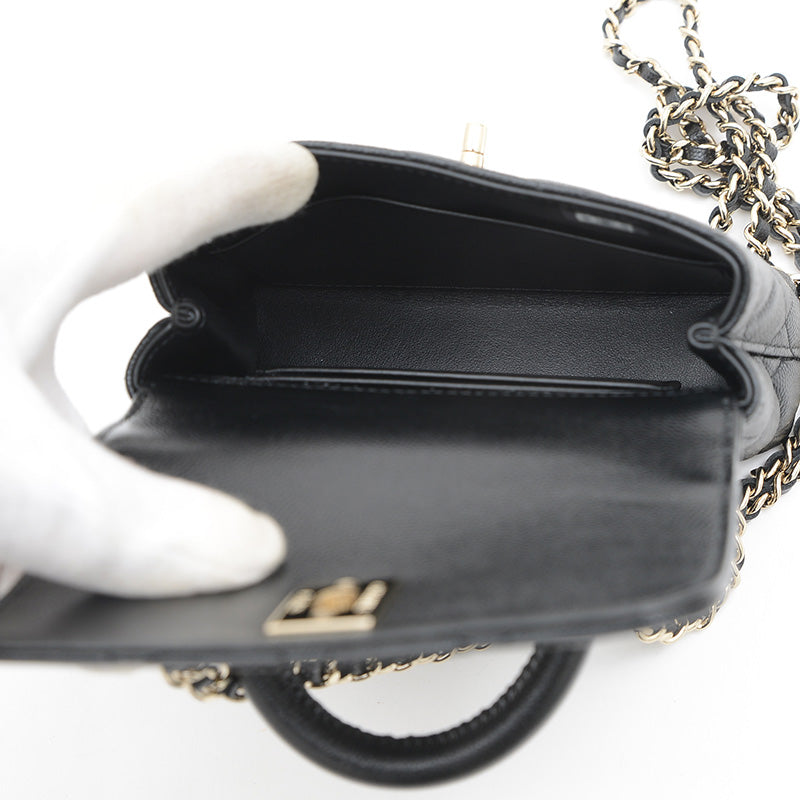 ココハンドル エクストラミニ キャビアスキン ブラック ゴールド金具 AP4244 ハンドバッグ