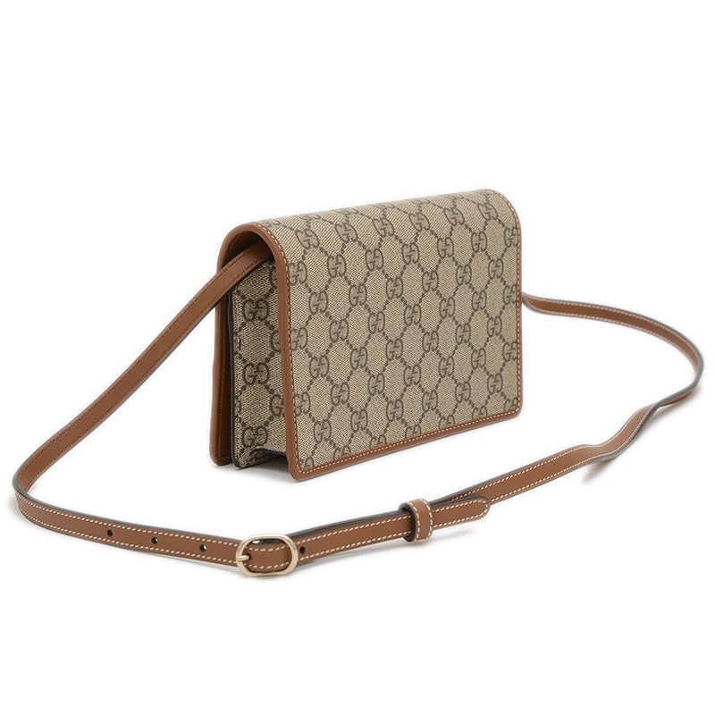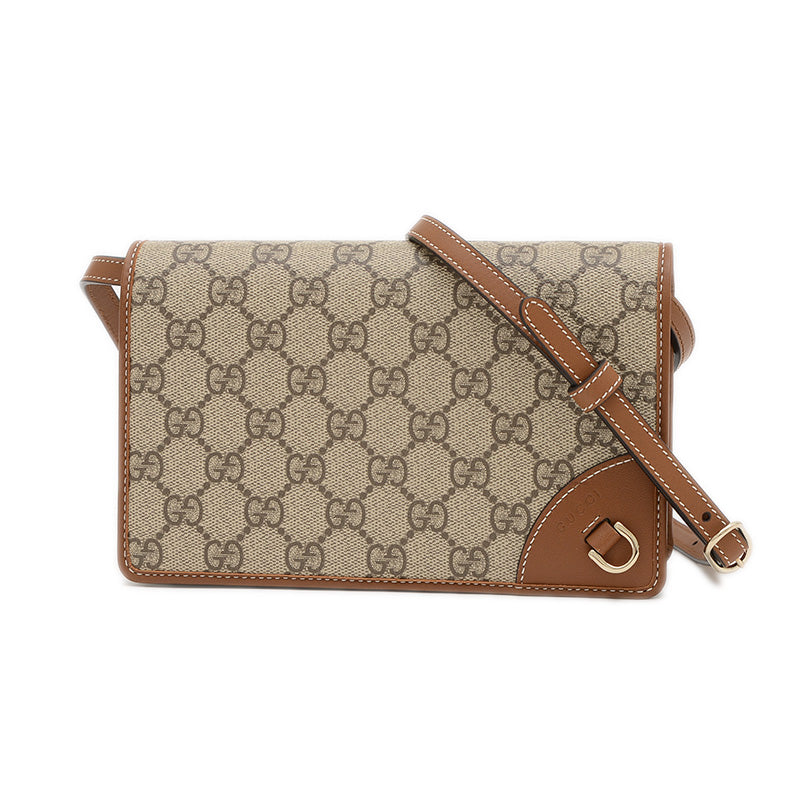 GGエンブレム ショルダーウォレット ベージュ/ブラウン 820688 ショルダーバッグ