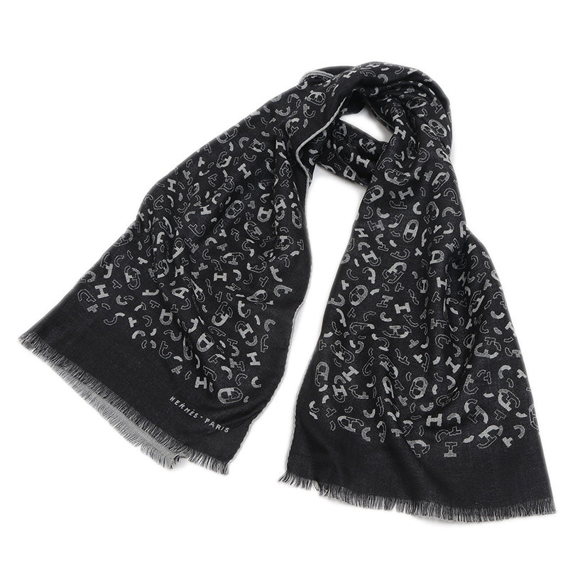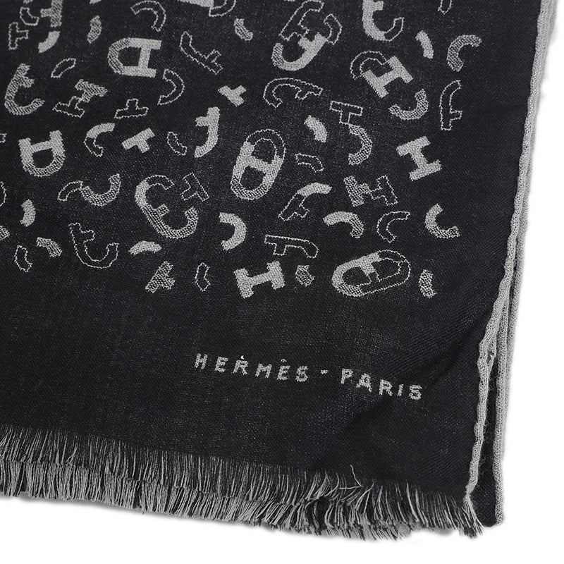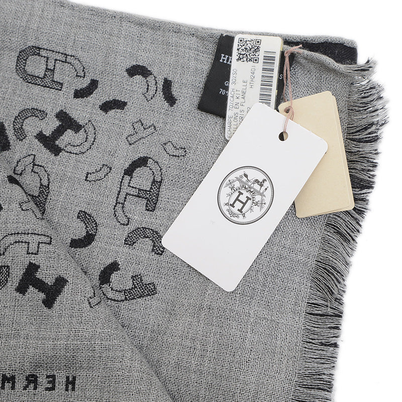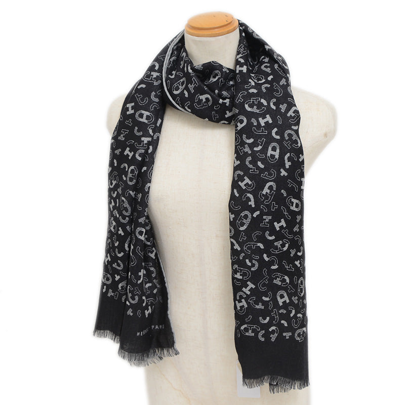 リバーシブルマフラー マイヨン アン キット カシミヤ混 ブラック/グリフランネル マフラー