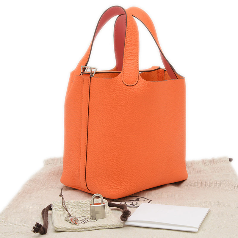 ピコタンロック PM 18 エクラ トリヨン オレンジミニアン シルバー金具 W刻印 ハンドバッグ