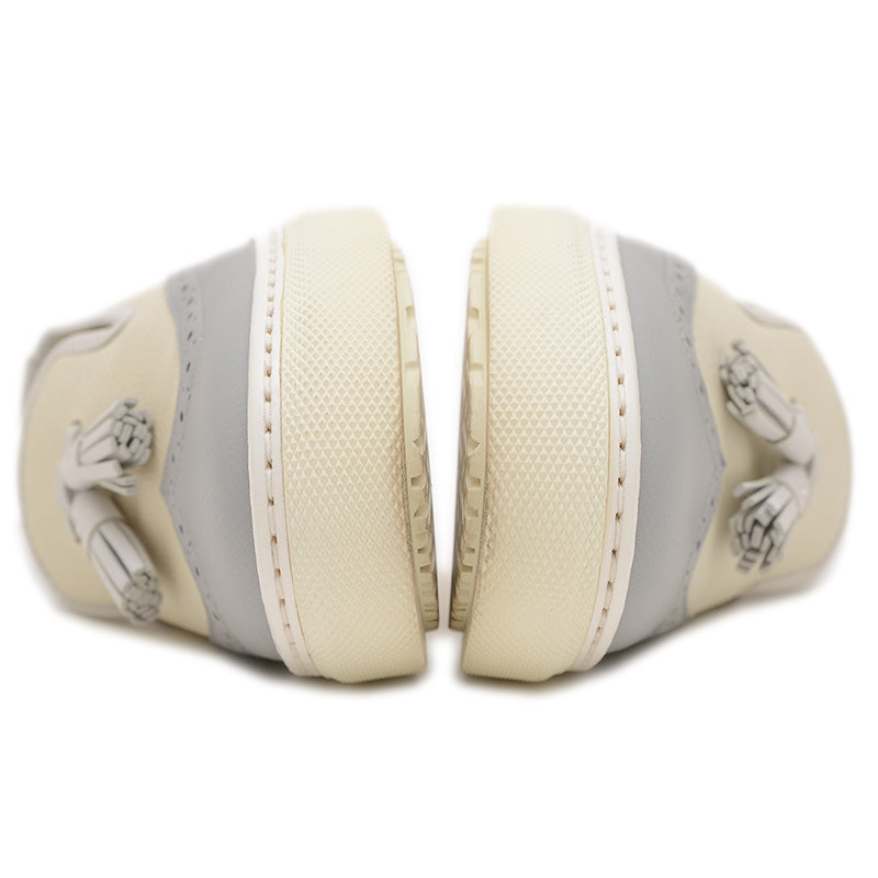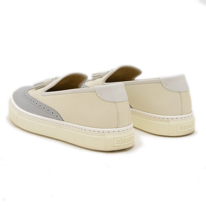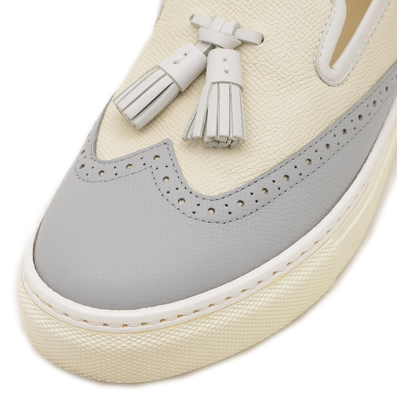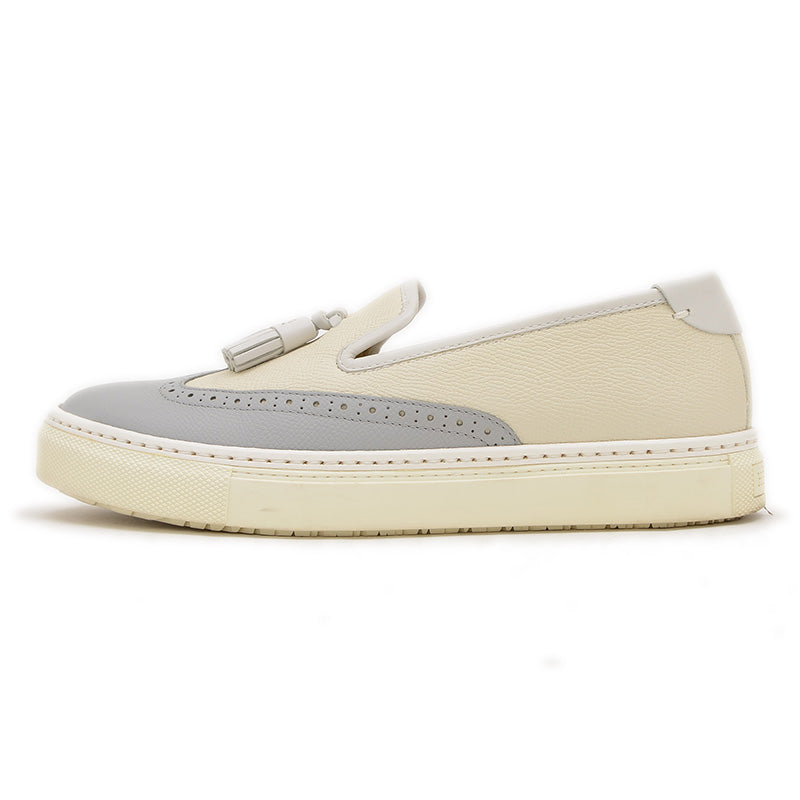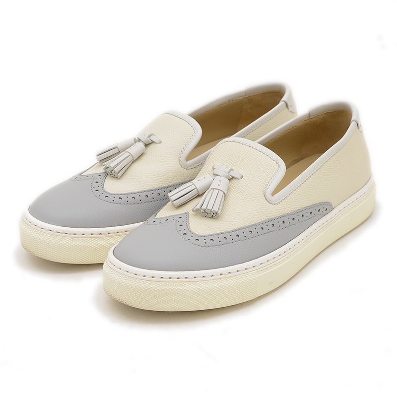 ウィングチップ タッセル スニーカー レザー アイボリー/グレー #36 スリッポン