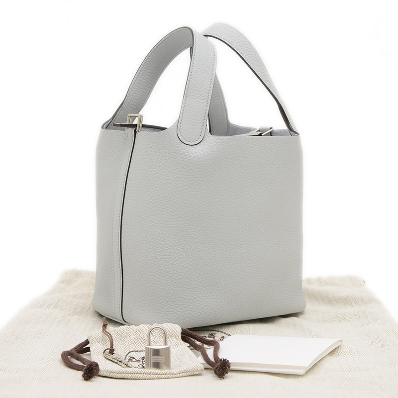 ピコタンロック PM 18 トリヨン ブルーペール シルバー金具 W刻印 ハンドバッグ