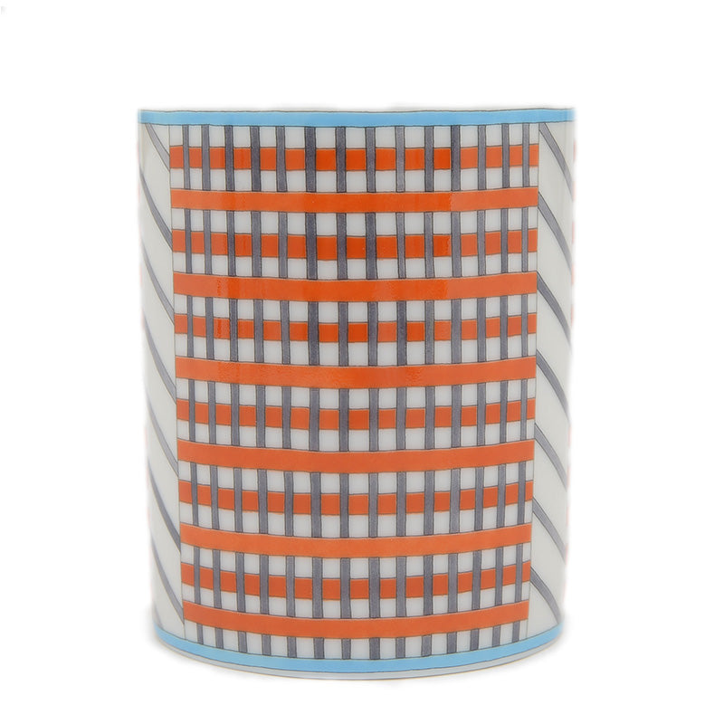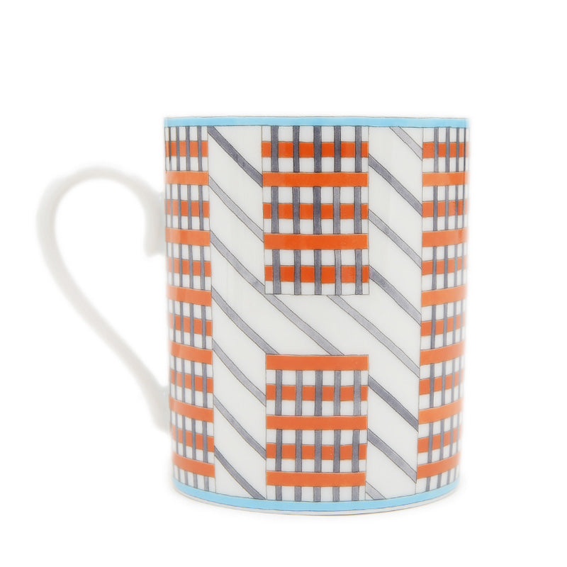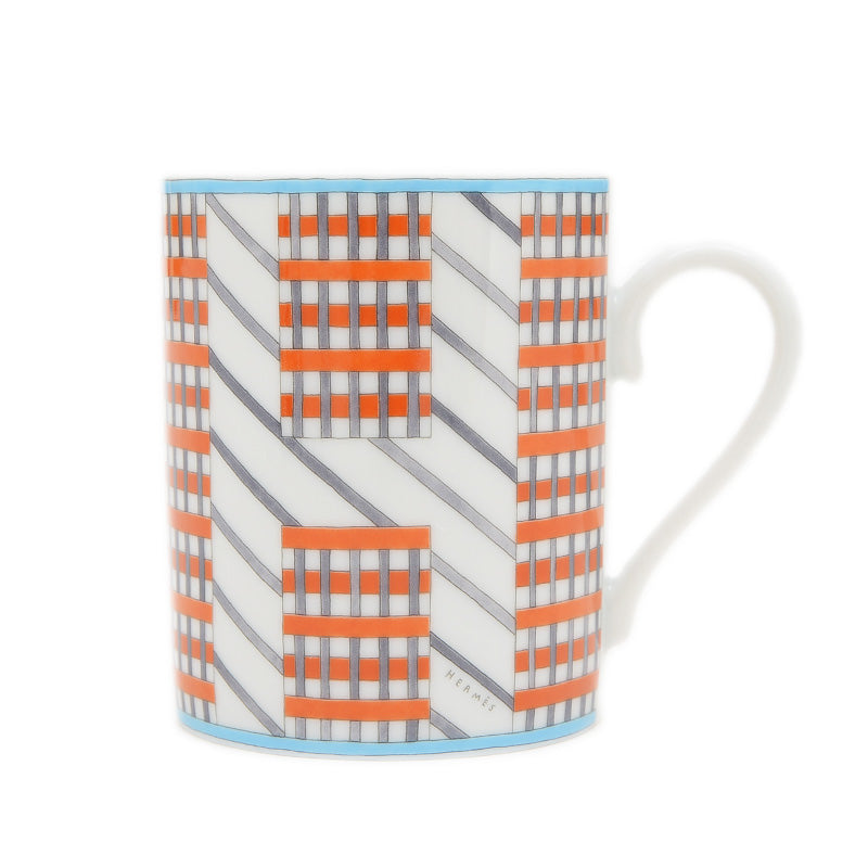 - 水彩画のような美しい色調で描かれたグラフィックなラインの中に、ブランドを象徴する**「H」の文字**が浮かび上がるユニークなデザインが特徴のポーセリン(磁器)製マグカップです。手作業によるクロモリトグラフィーで装飾されており、日常のティータイムやコーヒーブレイクを上品かつ遊び心のあるひとときに彩る逸品です。