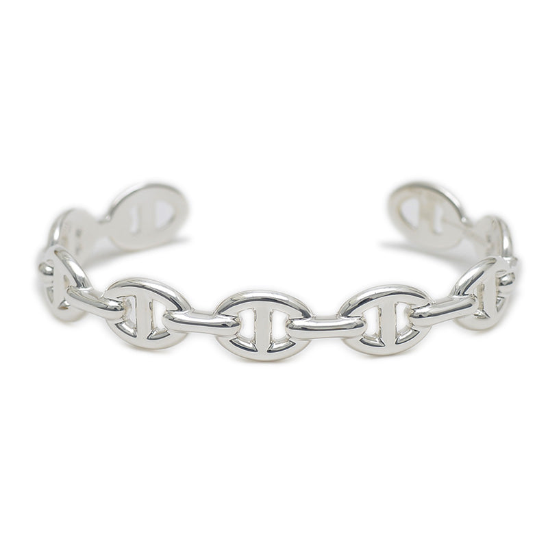 ブランドを象徴する錨の鎖「シェーヌダンクル」モチーフを、より洗練された一体型のフォルムで表現したバングルです。上質なシルバー925素材が洗練された輝きを放ち、手首にモダンで存在感のあるアクセントを添えます。シンプルでありながら力強い個性を主張し、日常使いから特別な日まで幅広く活躍する、タイムレスな魅力を持つ逸品です。