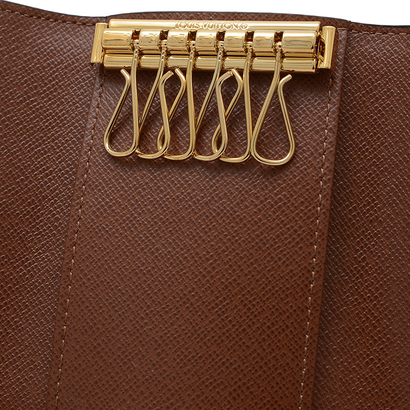 アイコニックなモノグラム・キャンバスを使用した6連キーケースです。コンパクトなサイズながら、6つのキーフックとスリムなデザインで鍵をスマートに収納できます。スナップボタンでしっかりと留められ、バッグやポケットの中で鍵が散らばるのを防ぎ、日常にルイ・ヴィトンらしい上品さと実用性を添える人気のアイテムです。