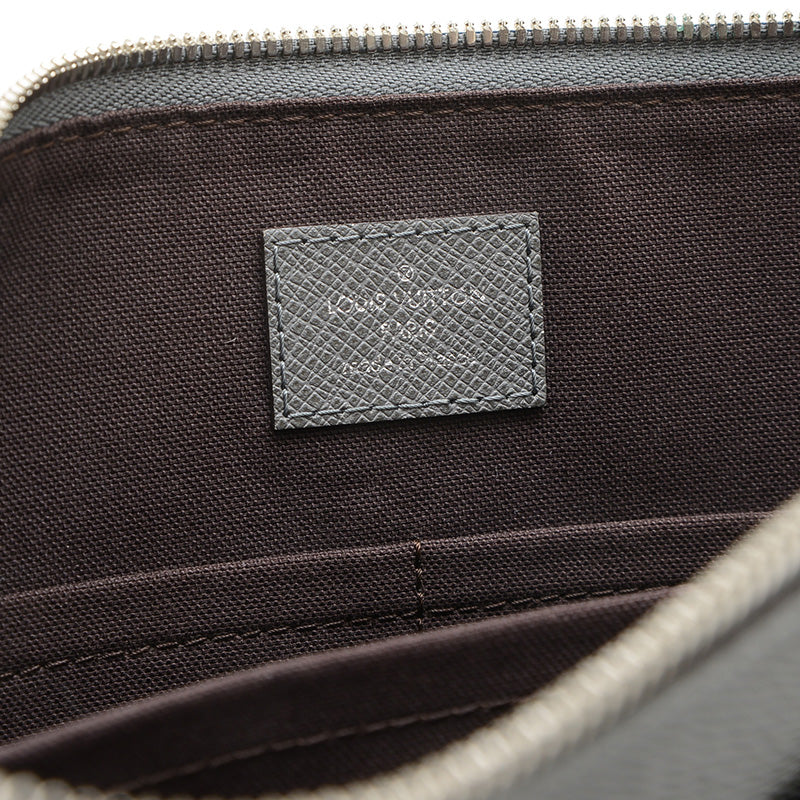 - グレートーンのタイガレザーとシルバーメタルが上品なA4対応ショルダーバッグ。外ポケット×1、内ポケット×5+ペンホルダー×2と整理力に優れ、調節可能ストラップで斜め掛けも快適な、ビジネスからカジュアルまで活躍する逸品です。