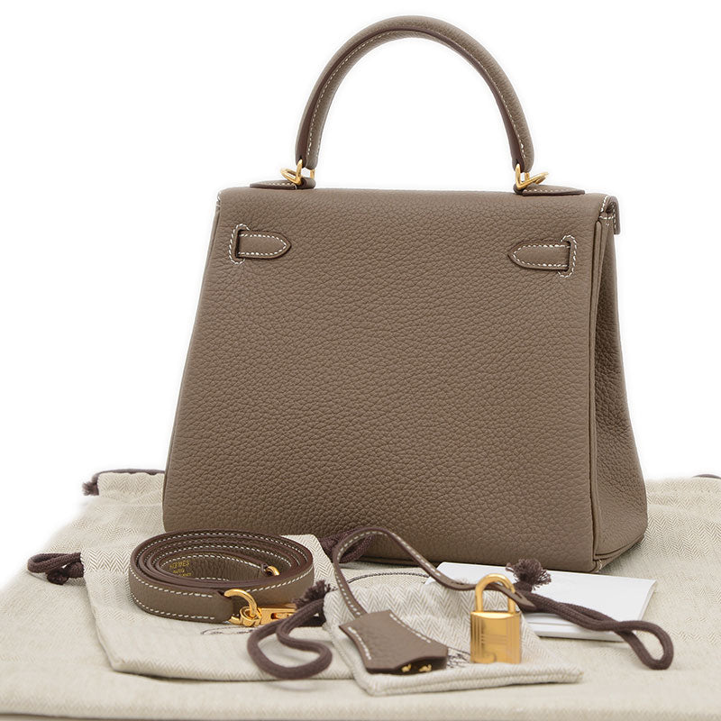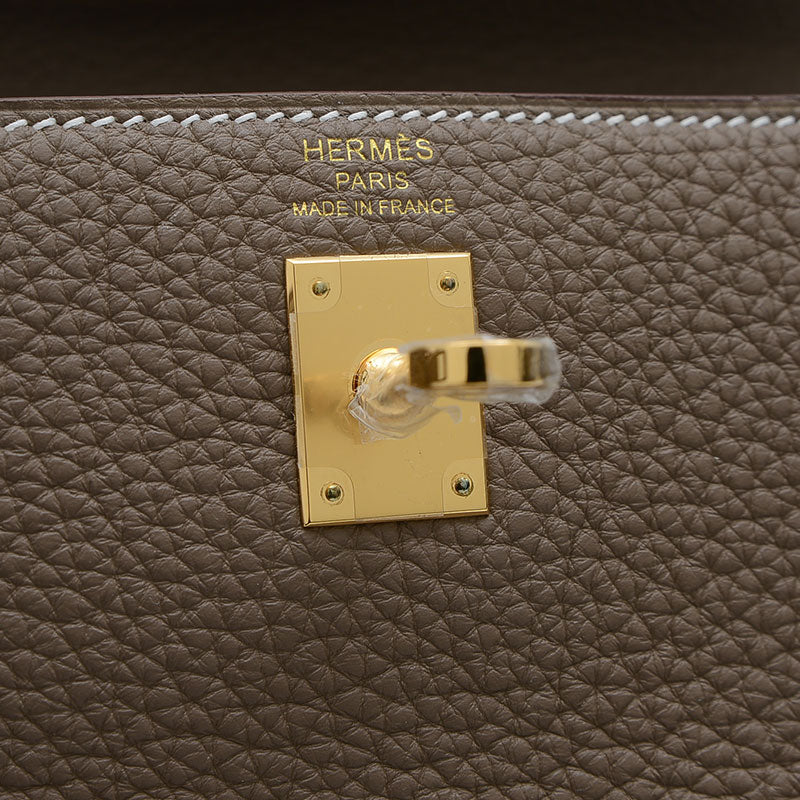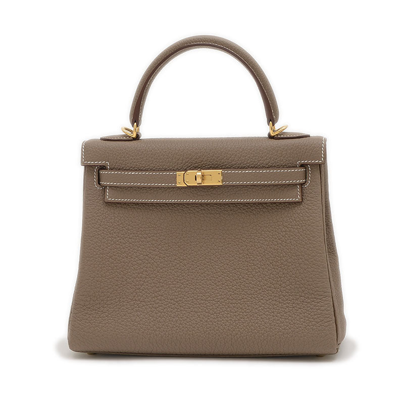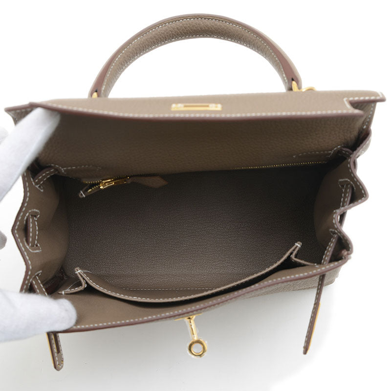 ケリー25 内縫い トゴ エトゥープ ゴールド金具 W刻印 ハンドバッグ