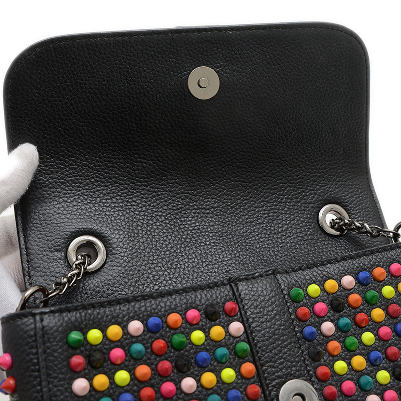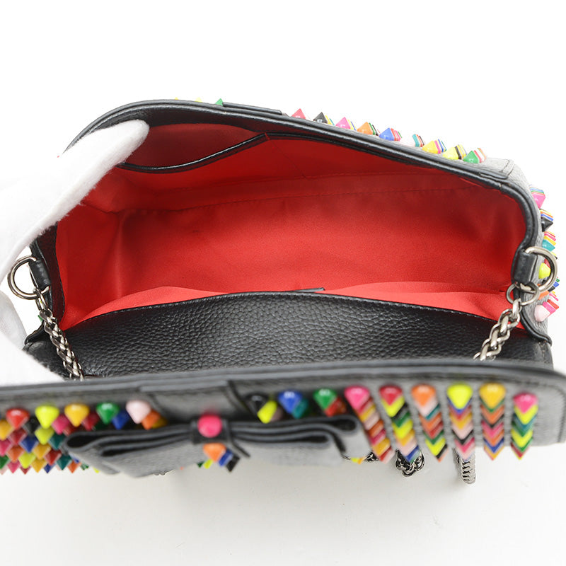 チェーンショルダーバッグ レザー ブラック/マルチカラー ショルダーバッグ