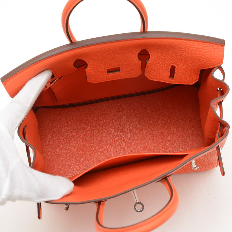 バーキン25 トゴ フーオレンジ シルバー金具 T刻印 ハンドバッグ