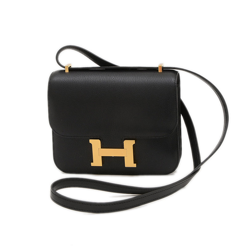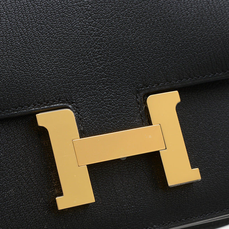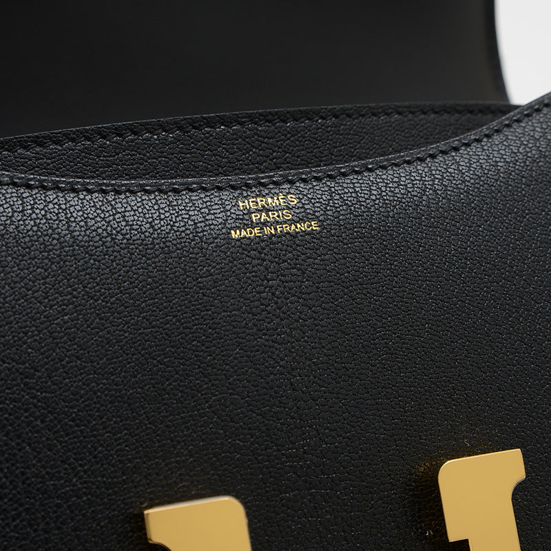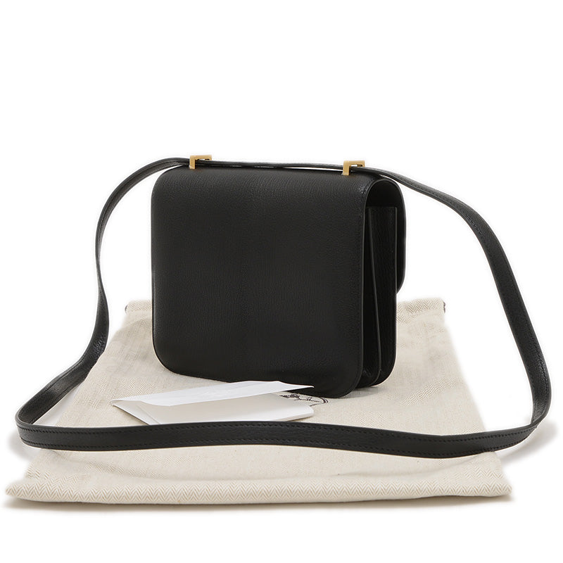 コンスタンス ミニ 18 ミロワール シェーブル ブラック ゴールド金具 W刻印 ショルダーバッグ