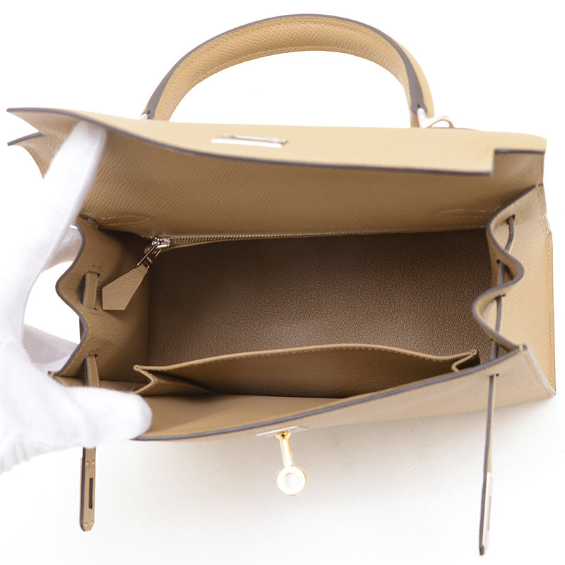 ケリー25 外縫い エプソン トレンチ エレクトラム金具 K刻印 ハンドバッグ