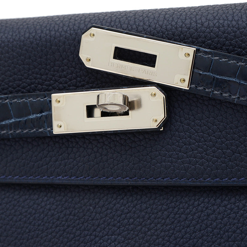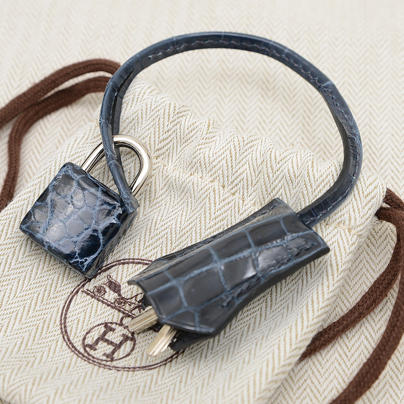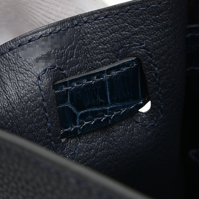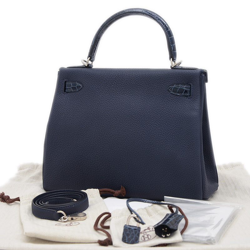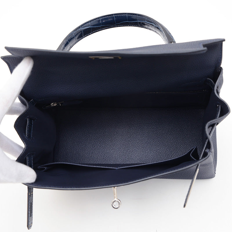 ケリー28 タッチ 内縫い トゴ/アリゲーター ブルーニュイ シルバー金具 Z刻印 ハンドバッグ