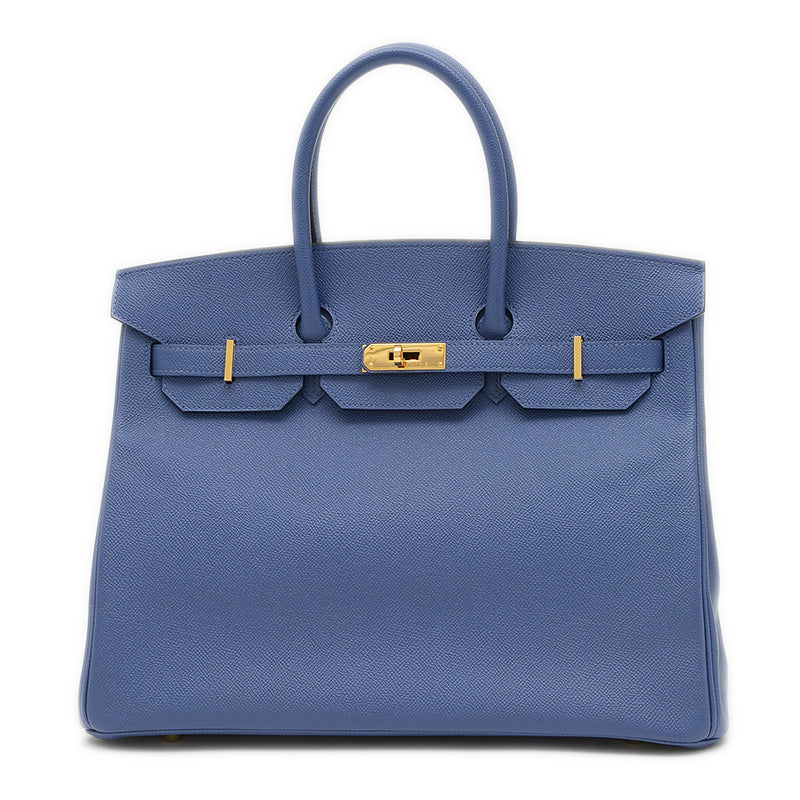- 傷に強く型崩れしにくいヴォー・エプソン素材の鮮やかなブルーブライトンカラーが特徴のハンドバッグです。輝くゴールド金具が洗練されたアクセントとなり、35cmという日常使いから小旅行まで対応できるサイズ感ながらも、バーキン特有のエレガンスと存在感を放ちます。どんなスタイルも上品に格上げする、非常に人気の高い逸品です。