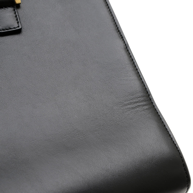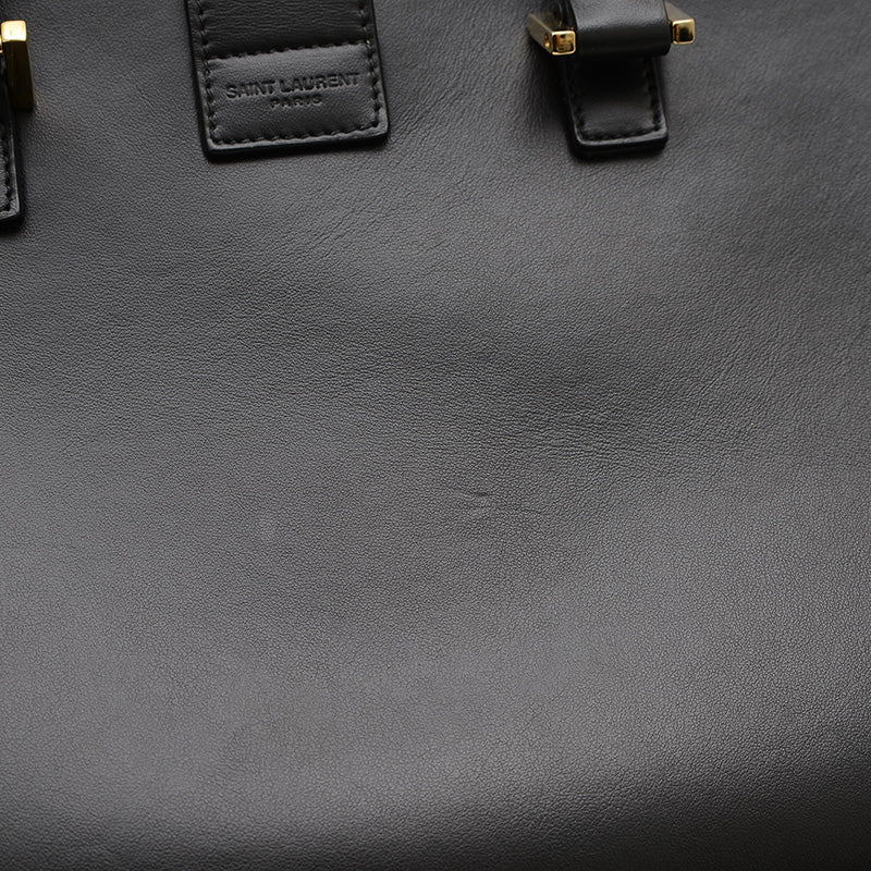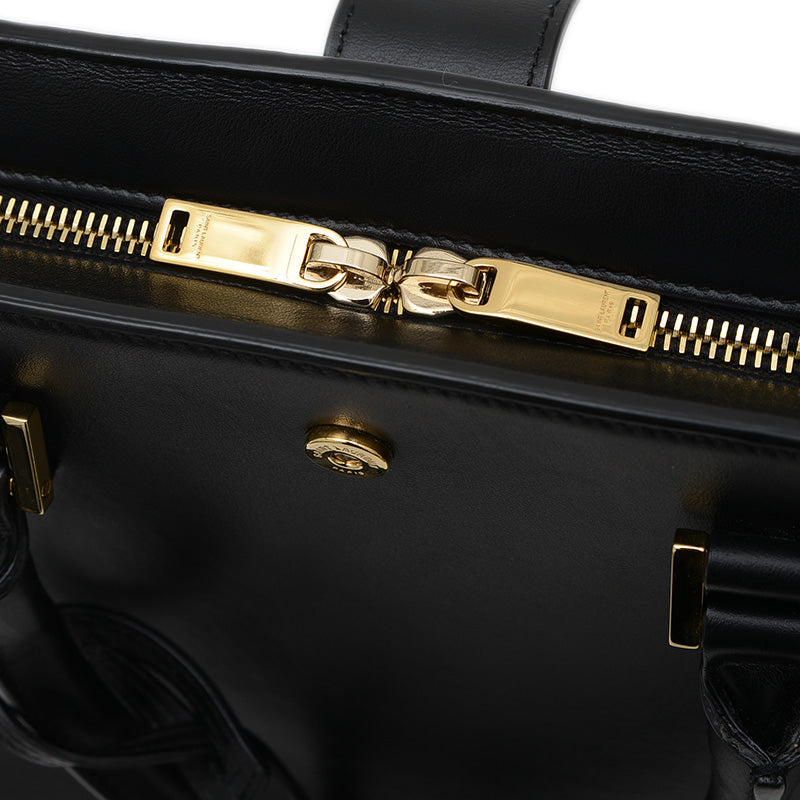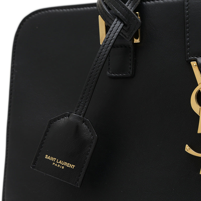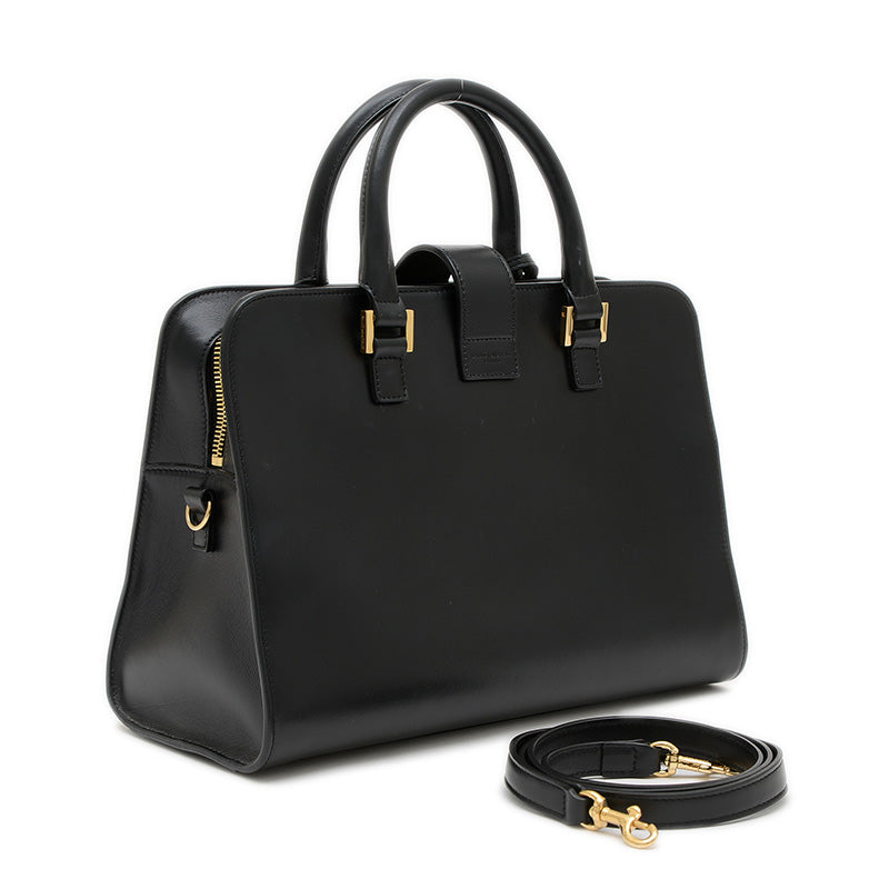 - 上質なレザーのシックなブラックカラーが特徴的なハンドバッグです。かっちりとした台形のフォルムと、フロントにあしらわれたYSLのロゴが洗練された印象を与えます。コンパクトながらも日常の必需品を収納でき、トップハンドルと取り外し可能なショルダーストラップにより、手持ちとしてもクロスボディとしても楽しめる人気の逸品です。