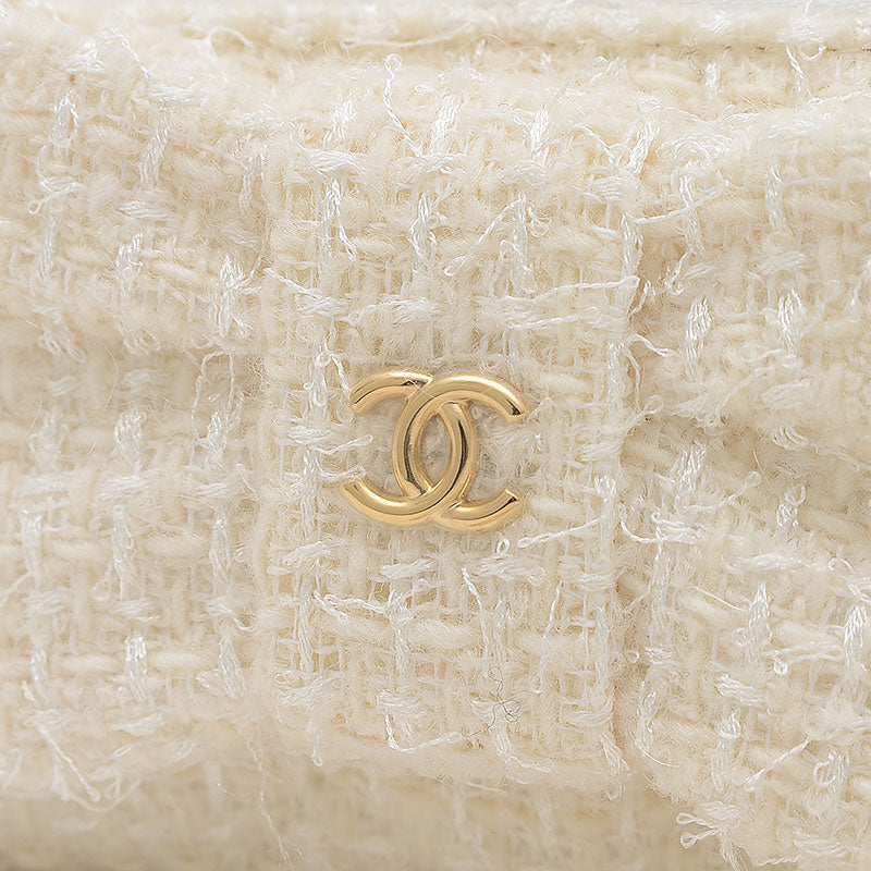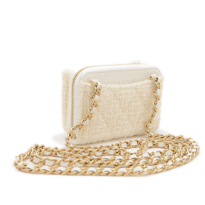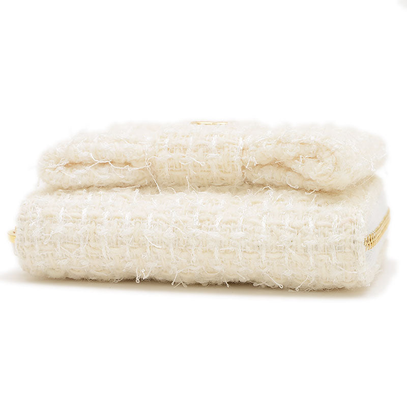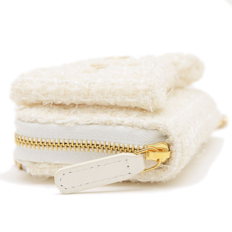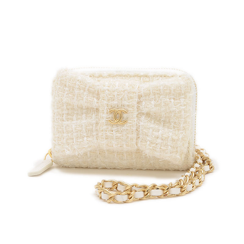 リボン ミニ チェーンウォレット コインケース ツイード ホワイト ゴールド金具 コインケース