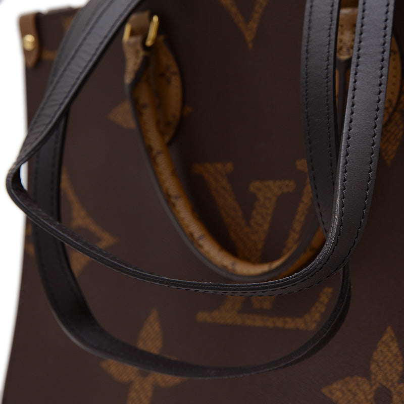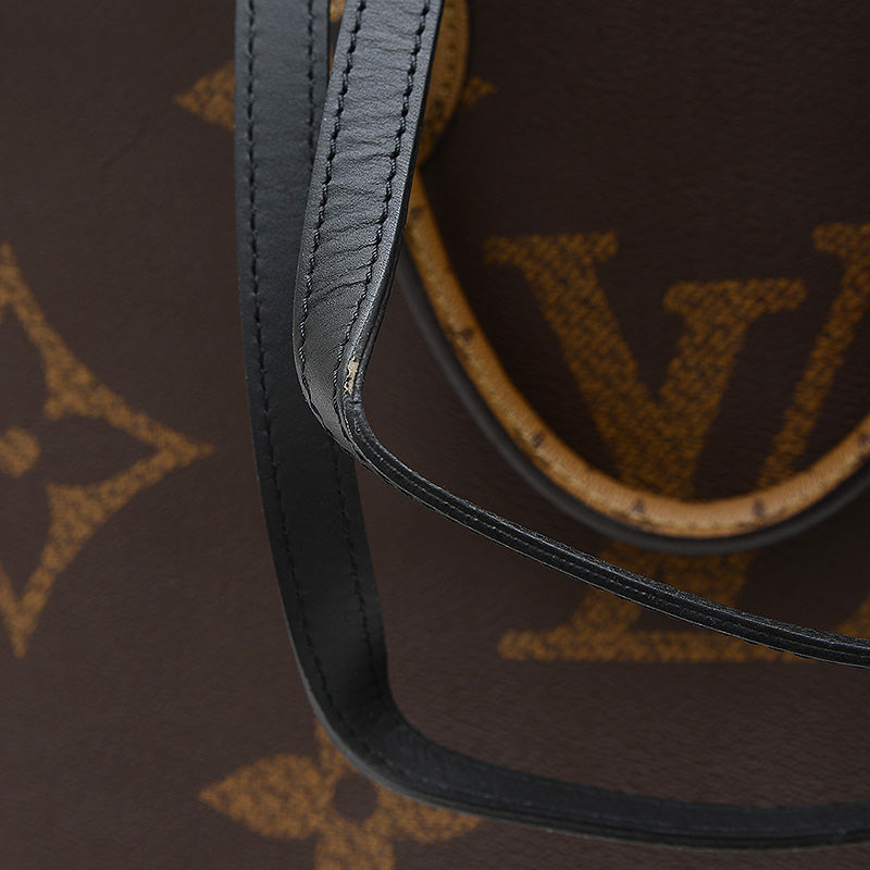 - 大胆な“モノグラム ジャイアント”とリバースのコントラストが視覚的インパクトを演出し、2WAYで肩掛けや手持ちが可能な多機能デザイン。A4サイズも収納可能な実用性と洗練された存在感を両立した逸品です。