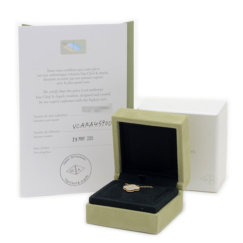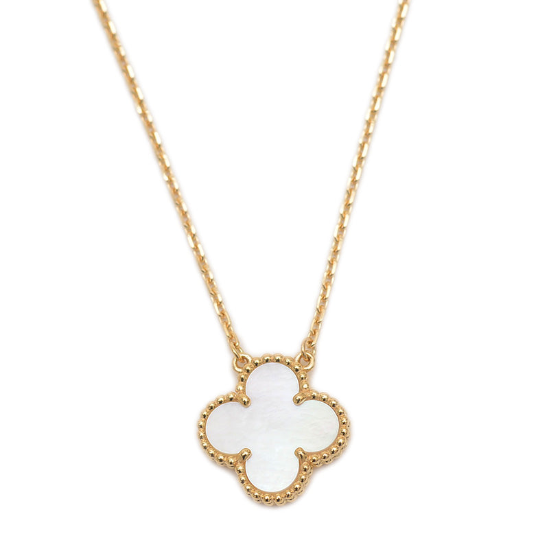 - ブランドを象徴するクローバーモチーフが特徴的なネックレスです。温かみのある18Kイエローゴールドに、神秘的な輝きを放つマザーオブパールが組み合わされ、胸元に上品で華やかな存在感を放ちます。時代を超えて愛される、エレガンスと幸運を象徴する人気の逸品です。