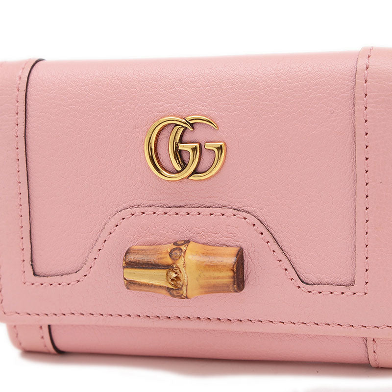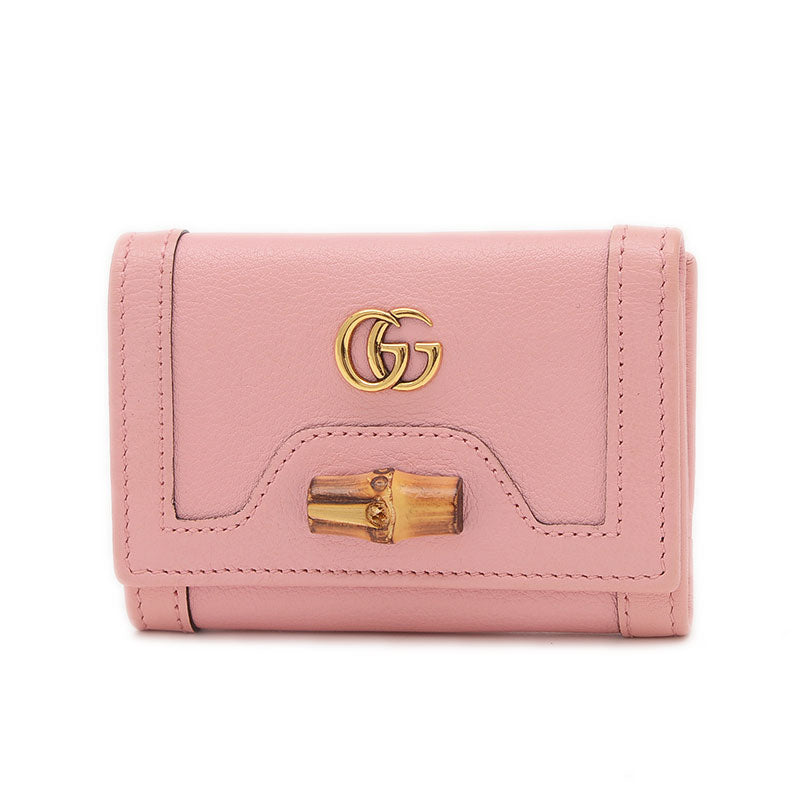 ダイアナ バンブー コンパクトウォレット 三つ折り財布 レザー ピンク 658633 三つ折り財布