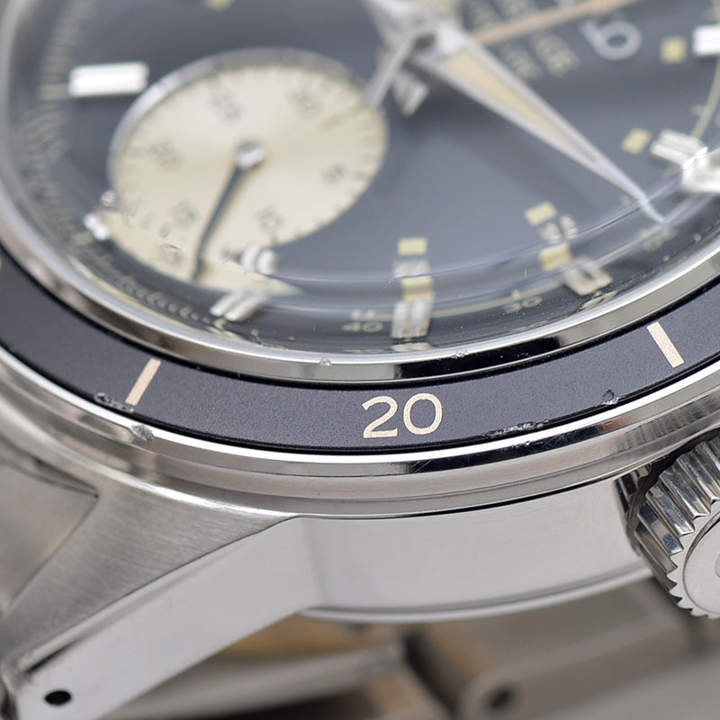 ブレスには保護シールが張られたままで使用感はあまりありませんが、ベゼルや風防、裏ブタにキズが数ヶ所見られるコンディションです。