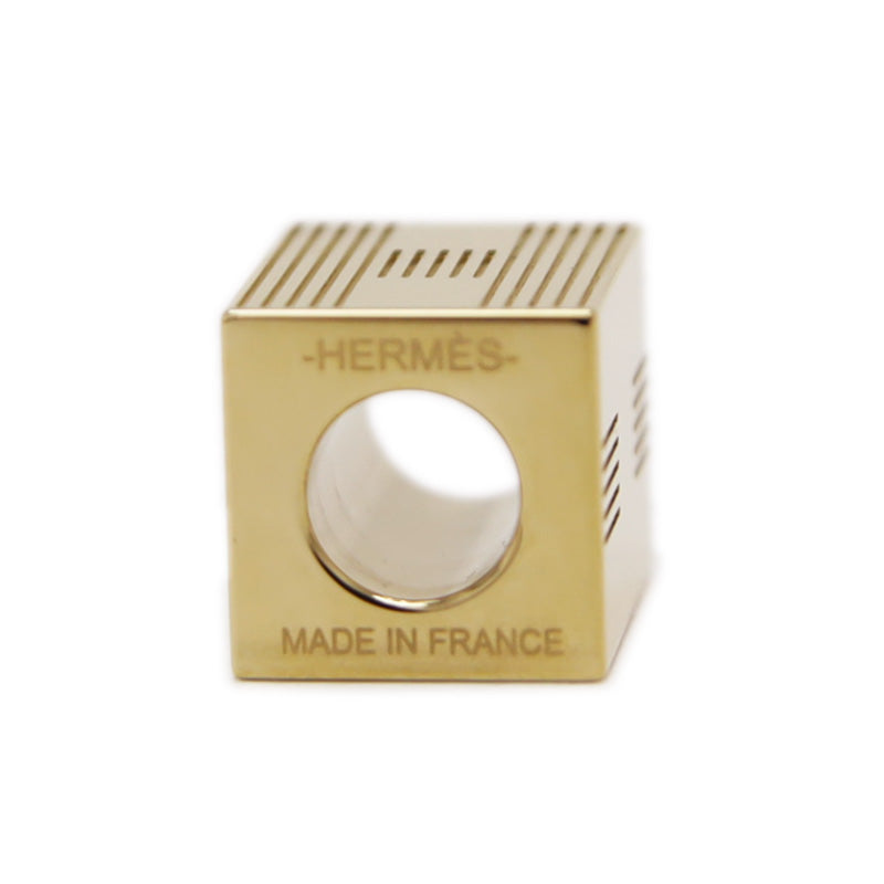 - ブランドを象徴するHモチーフがデザインされた、ツイリー用のスカーフリングです。キューブ型がモダンな印象を与え、ツイリーを通すだけで簡単に美しいアレンジを楽しめます。上品なゴールドカラーは、ツイリーの魅力を一層引き立て、首元やバッグに巻いた際にさりげなくエレガンスを添えるアクセサリーです。