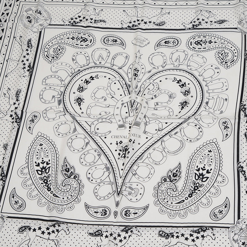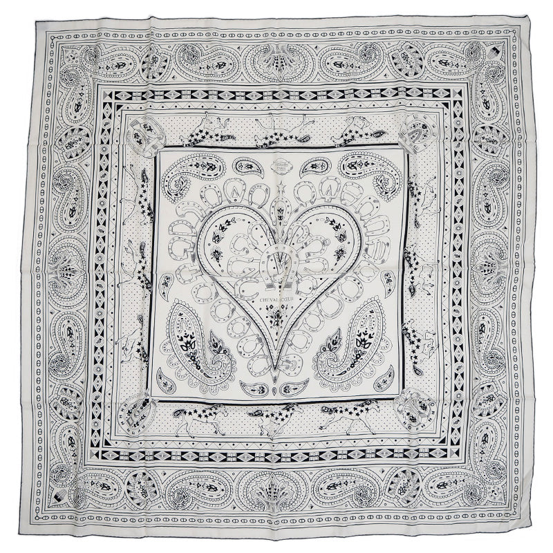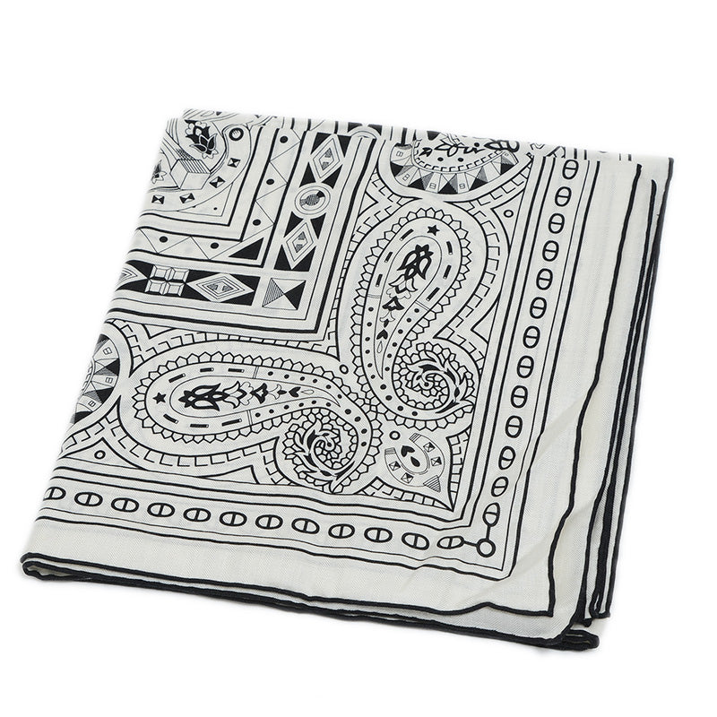 カレ140 カレジェアン ショール シュヴァル ドゥ クール バンダナ ブラン/ブラック スカーフ