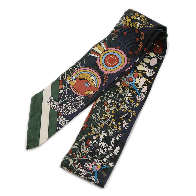 - 細長くスリムなシルクツイル製のスカーフです。首元や手首に巻くのはもちろん、バッグのハンドルに結びつけるなど多様なアレンジを楽しめます。色鮮やかな柄と滑らかな肌触りが特徴で、どんな装いにも上品な彩りと個性をプラスする、人気のアクセサリーです。