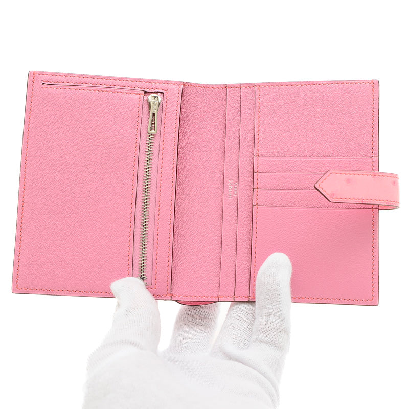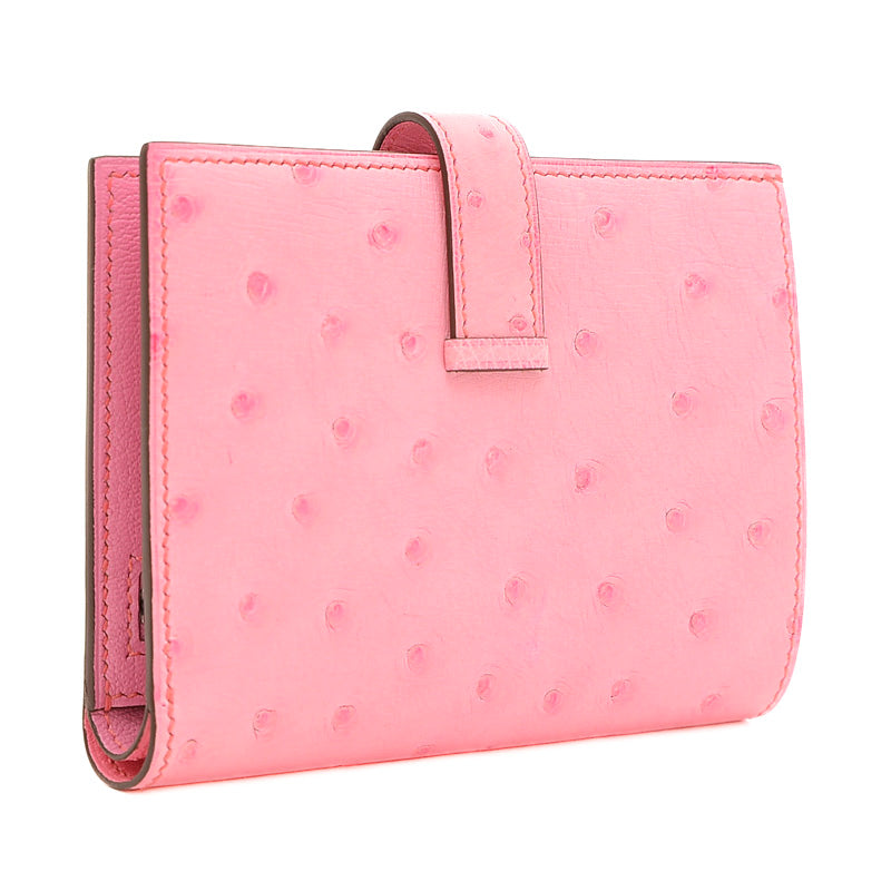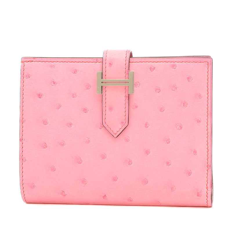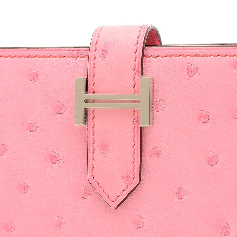 ベアンコンパクト 二つ折り財布 オーストリッチ バブルガムピンク シルバー金具 B刻印 二つ折り財布