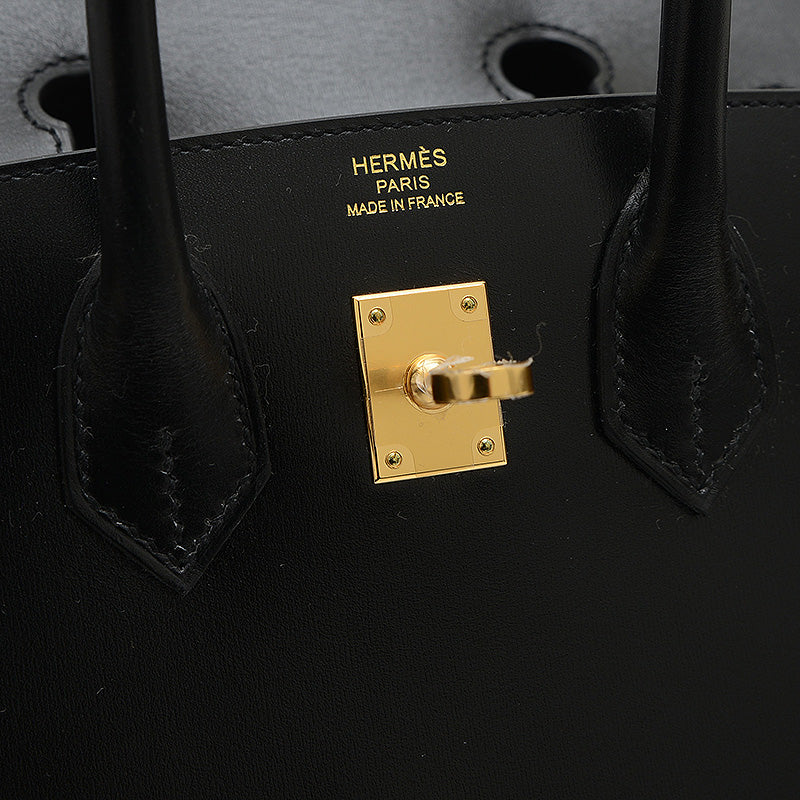 バーキン25 セリエ ボックスカーフ ブラック ゴールド金具 W刻印 ハンドバッグ