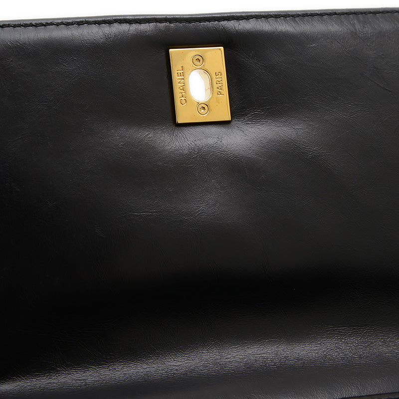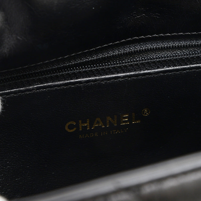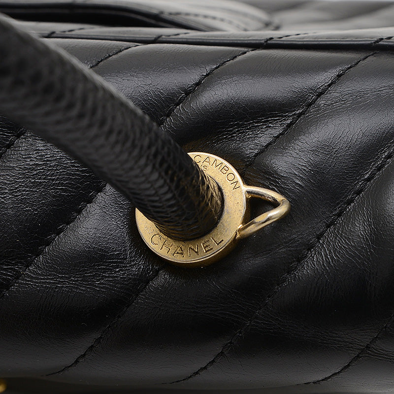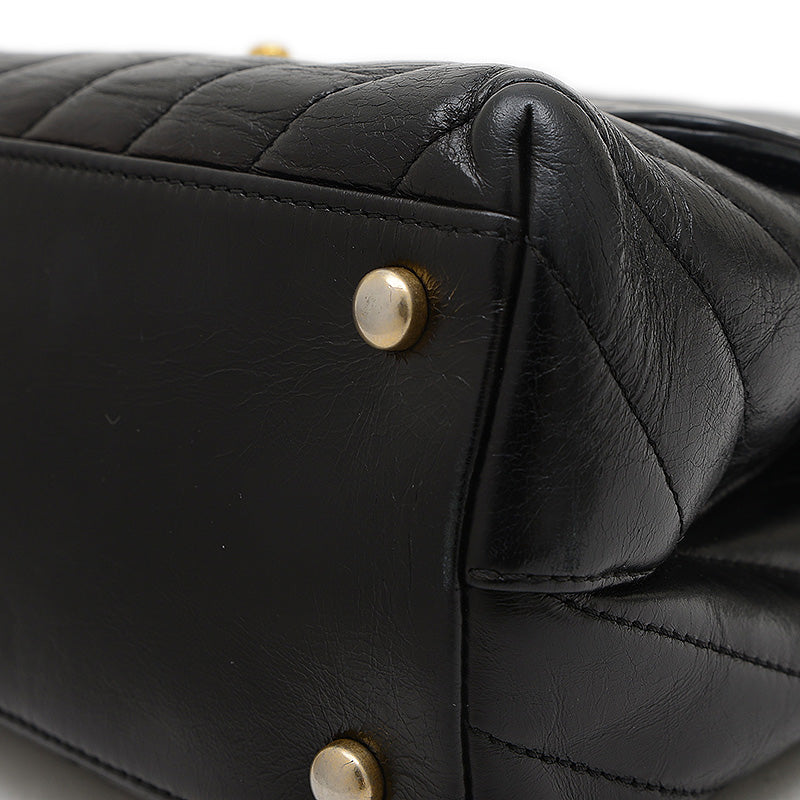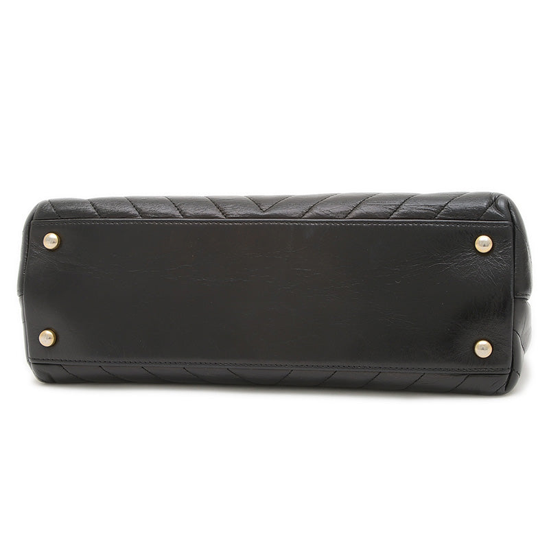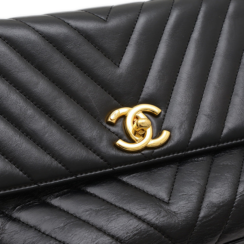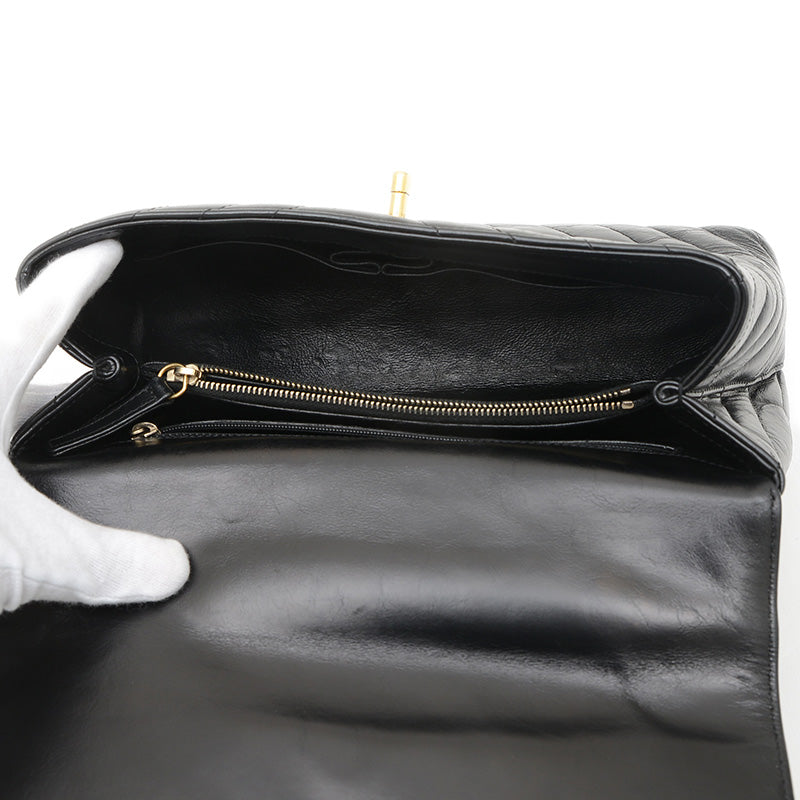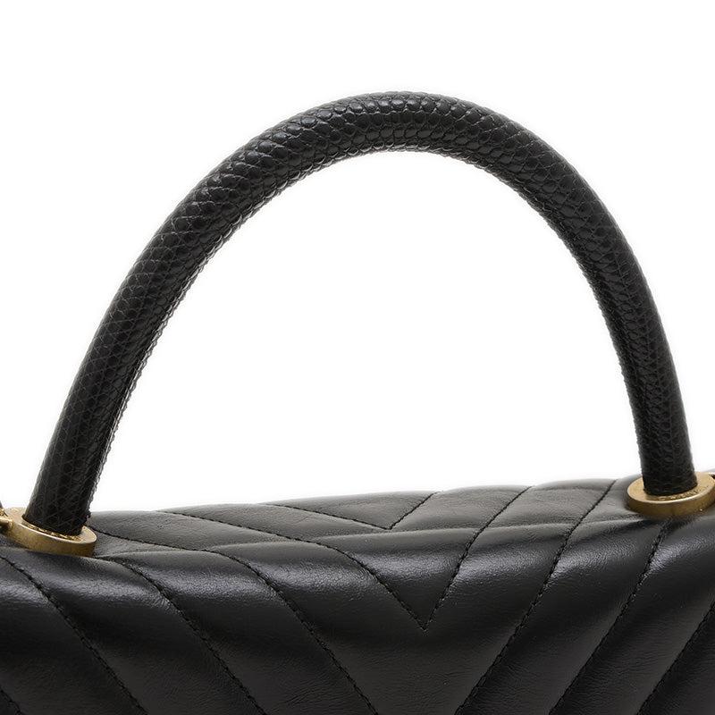 シェブロン ココハンドル フラップ 2WAYバッグ カーフスキン ブラック ゴールド金具 ハンドバッグ