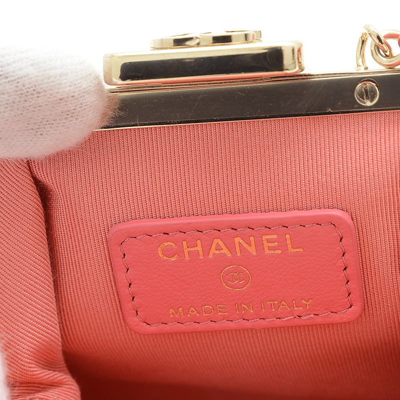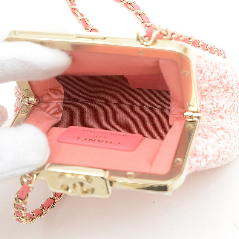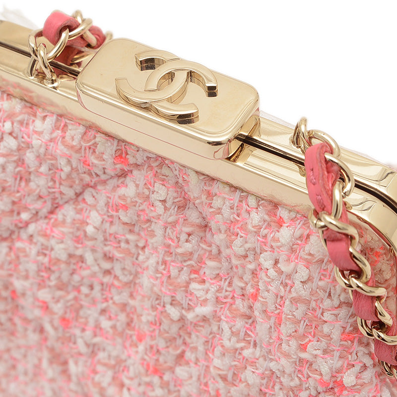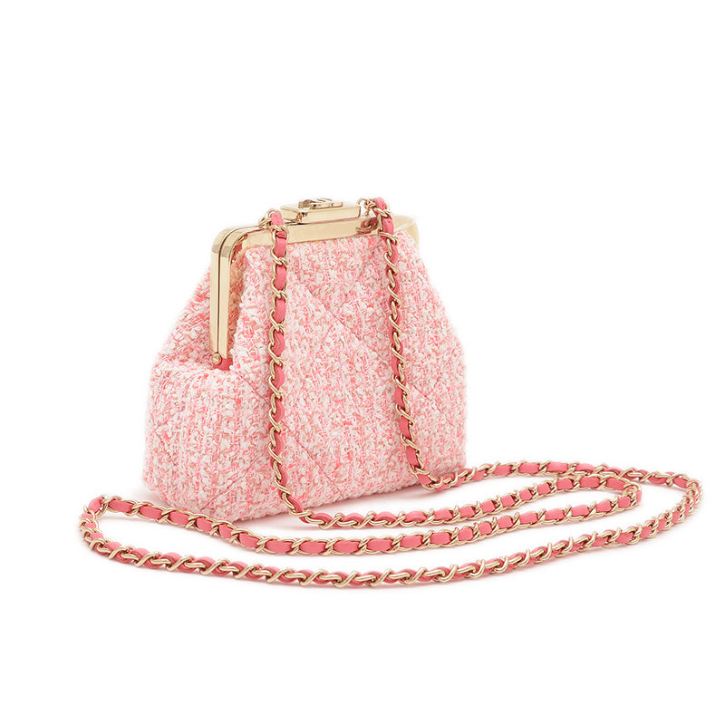 ココマーク がま口 チェーンショルダーバッグ ツイード ピンク ゴールド金具 ショルダーバッグ