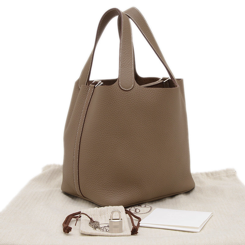 ピコタンロック MM 22 トリヨン エトゥープ シルバー金具 K刻印 ハンドバッグ