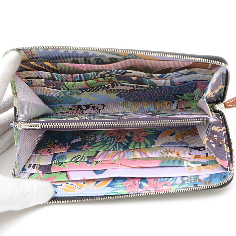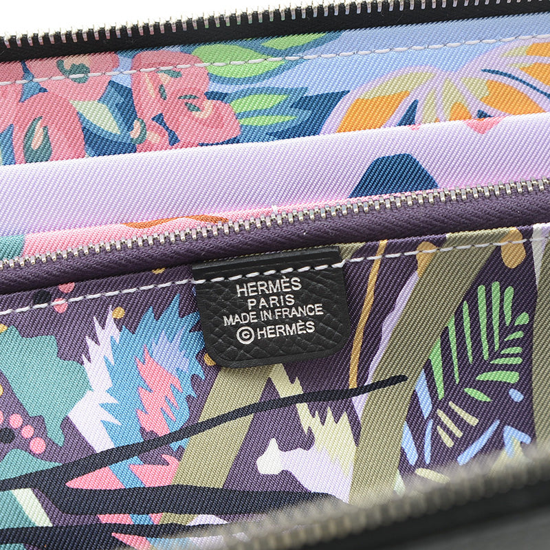 - シンプルで洗練されたブラックカラーに、内側にはシルク素材の華やかなライニングが施され、エルメスらしい高級感を演出しています。