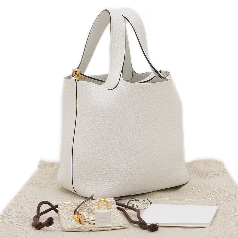 ピコタンロック PM 18 トリヨン ニューホワイト ゴールド金具 W刻印 ハンドバッグ