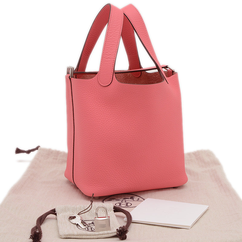 ピコタンロック PM 18 トリヨン ローズアザレ シルバー金具 W刻印 ハンドバッグ