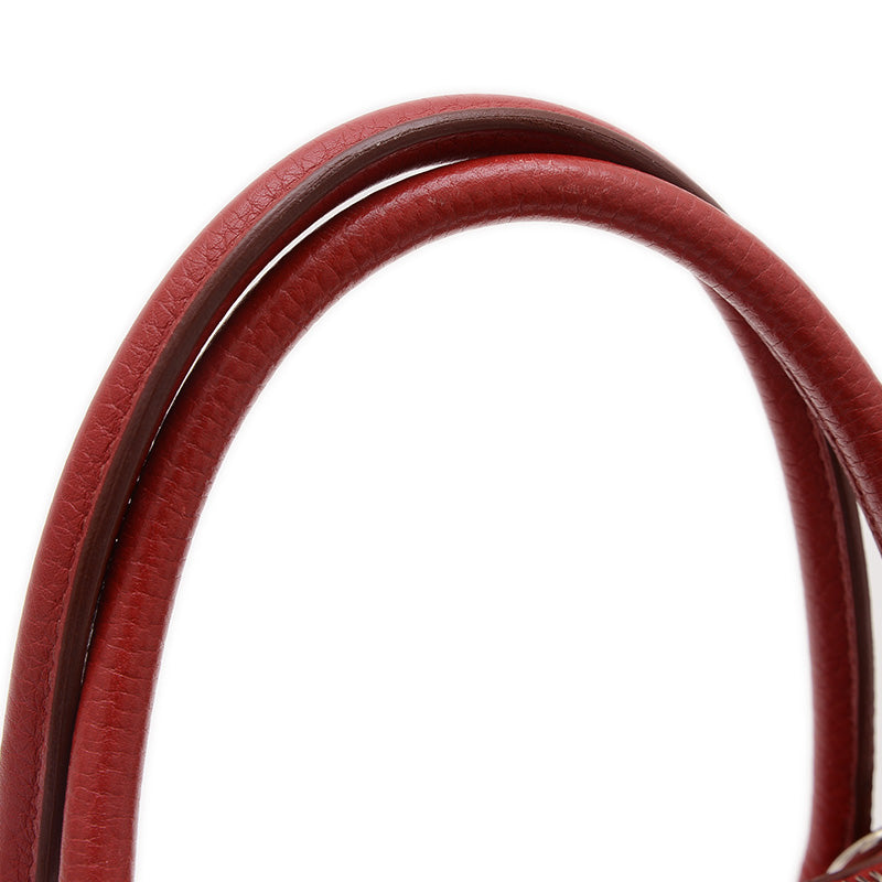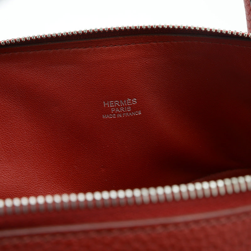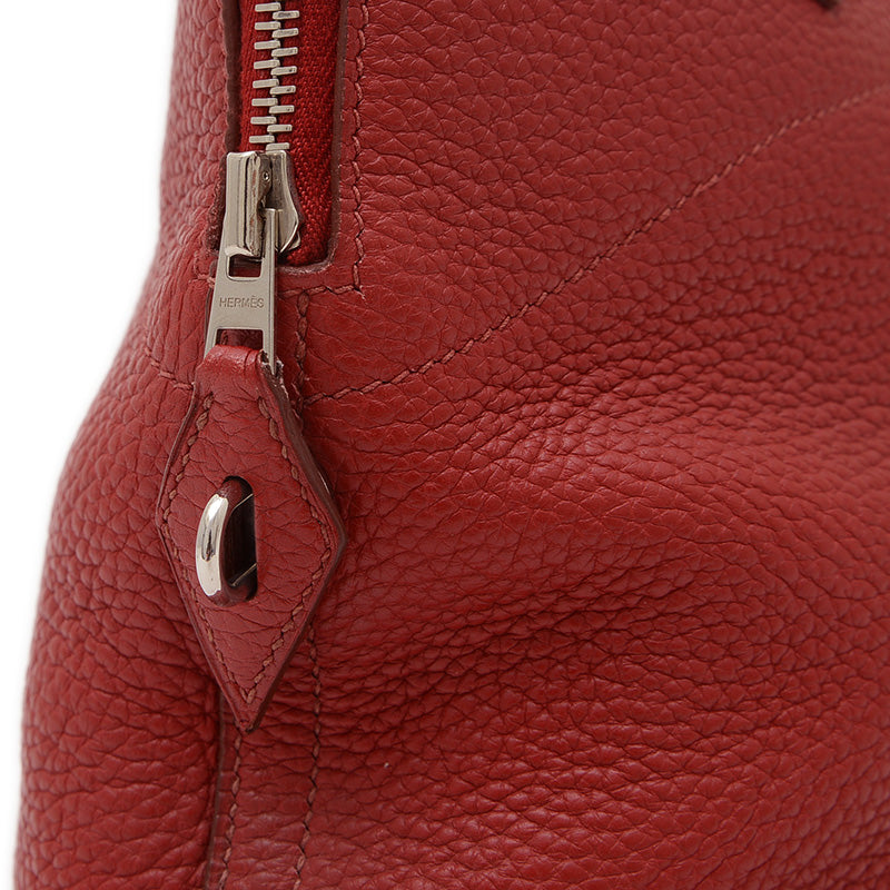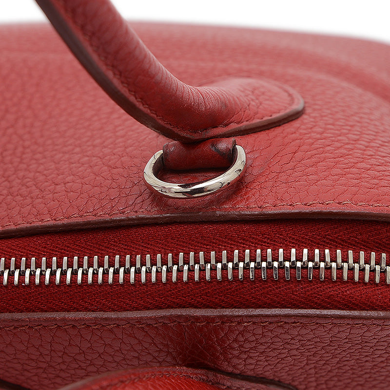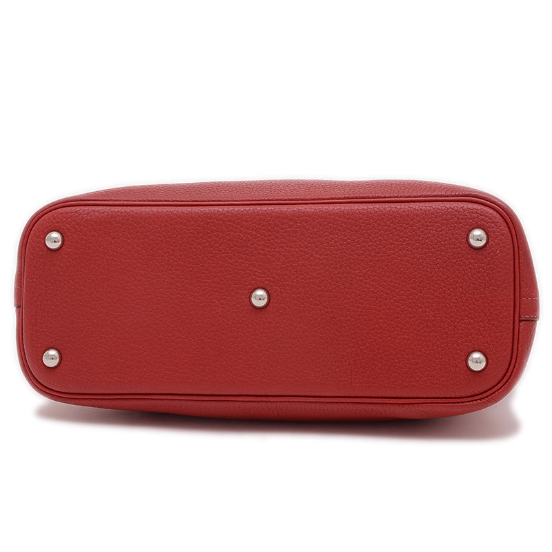 鮮やかな赤「ルージュヴィフ」のトリヨンクレマンスレザーを使用し、シルバー金具が上品なアクセントとなった2WAYバッグです。丸みを帯びたフォルムと滑らかなジッパー開閉が特徴で、ショルダーストラップ付きで使い勝手も良好。