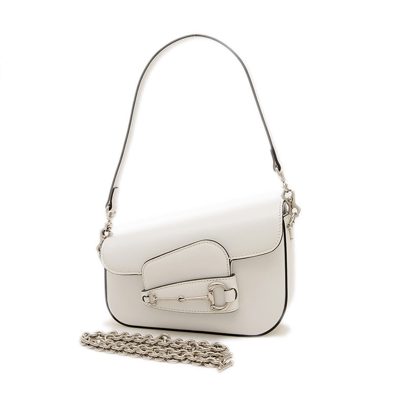 - クラシックなホースビット金具を使用した、エレガントで機能的な2WAYバッグです。コンパクトなサイズながら、取り外し可能なレザーとチェーンのストラップで多彩なスタイリングが可能です。
