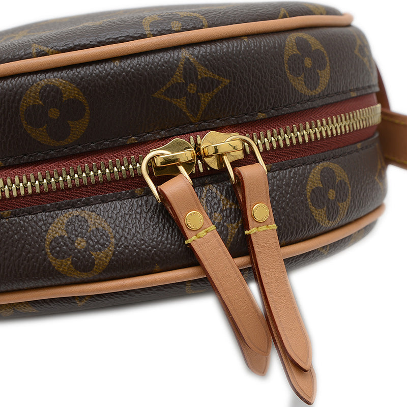 クラシックな帽子箱をモチーフにしたラウンド型のショルダーバッグです。モノグラム・キャンバスとレザーの組み合わせが上品で、コンパクトながらも必要なアイテムを収納できる実用性を備えています。