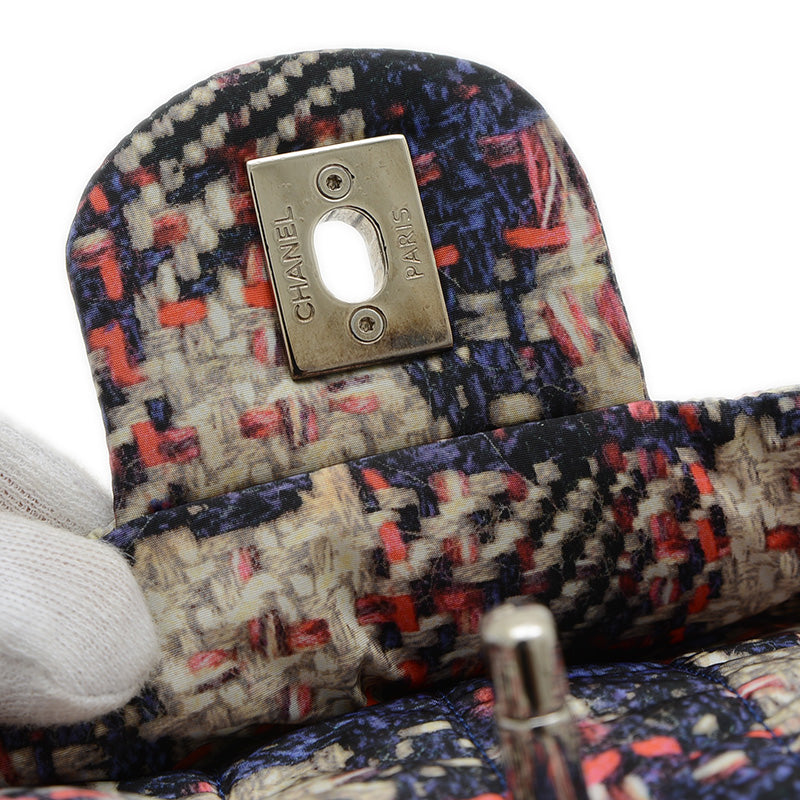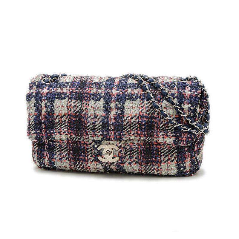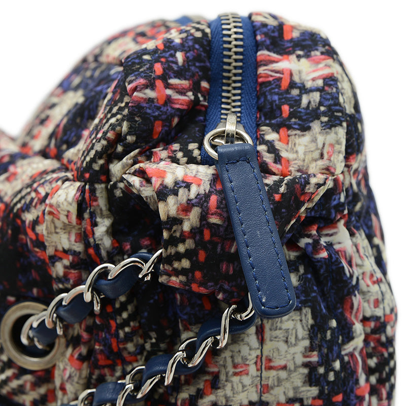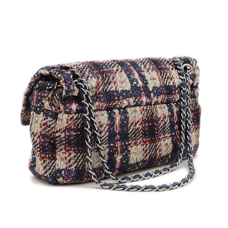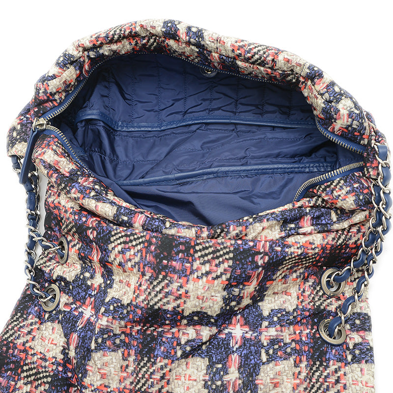 ツイード風プリントが施されたナイロン素材を使用した、軽量でスタイリッシュなショルダーバッグです。ブラックとホワイトのモノトーンカラーにシルバー金具がアクセントとなり、上品な印象を与えます。