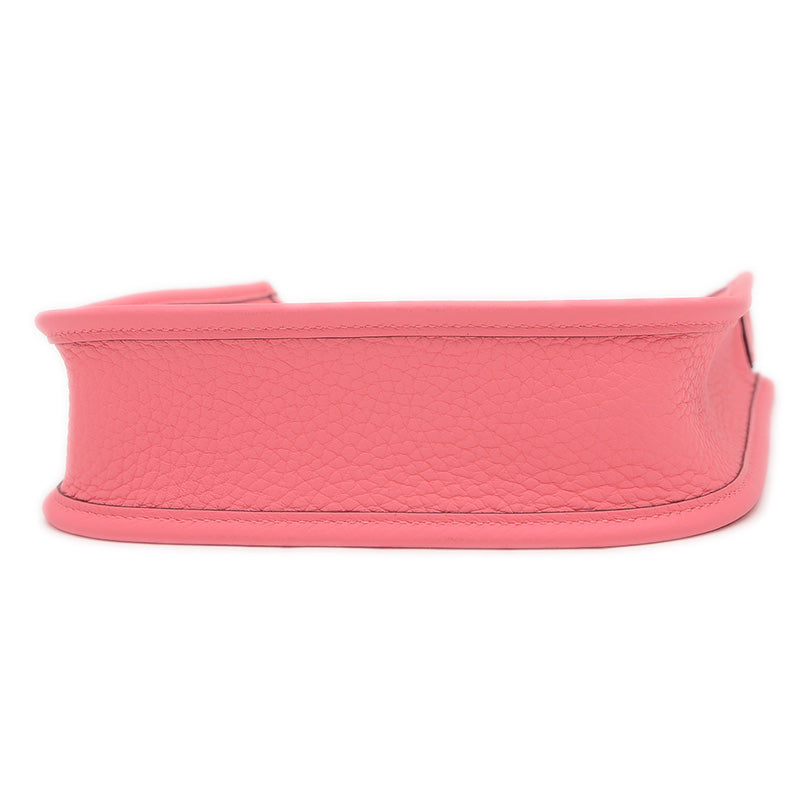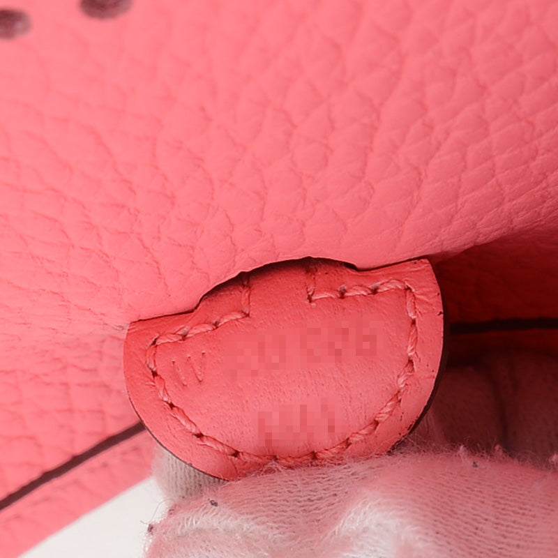 - 愛らしいローズアザレカラーのトリヨンクレマンスレザーと、洗練されたシルバー金具が特徴のコンパクトなショルダーバッグです。最小サイズながらも、エルメスらしい上質な素材とアイコニックなパンチングの「H」マークが際立ち、日常使いに華やかさを添えます。