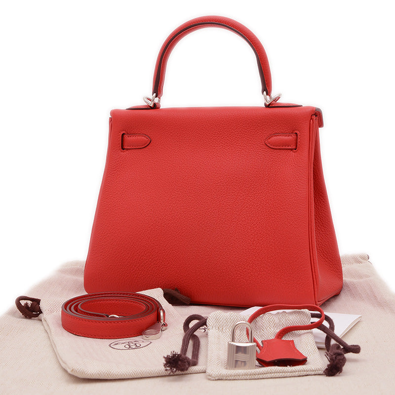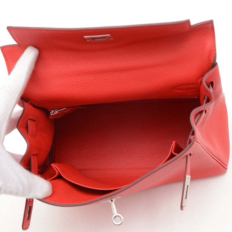 ケリー25 内縫い トゴ ルージュラデュー シルバー金具 W刻印 ハンドバッグ