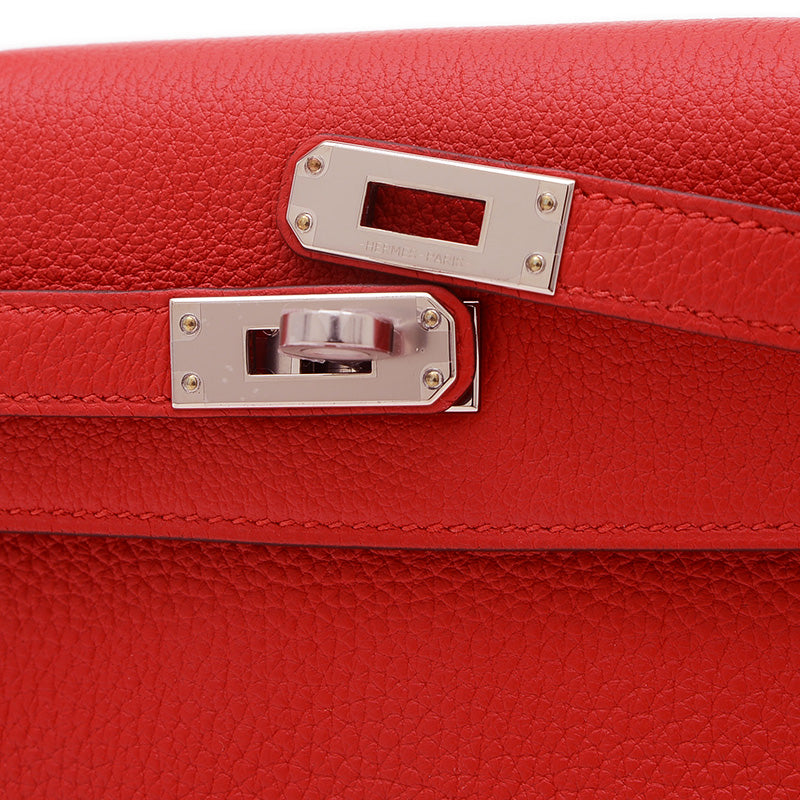 - 縫い目が内側に隠れる「内縫い」仕立てと、しなやかで人気の高いトゴ素材が特徴のハンドバッグです。鮮やかなルージュラデュー(やや青みのある赤)カラーが目を引き、クールなシルバー金具との組み合わせがモダンで洗練された印象を与えます。コンパクトながらもケリーバッグのエレガンスを存分に感じさせ、装いに華やかさを添える逸品です。