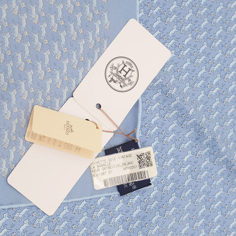 ポケットチーフ 45 ヴィンテージシルク LA BABALLE アズール/グリ/シエル/ホワイト その他小物