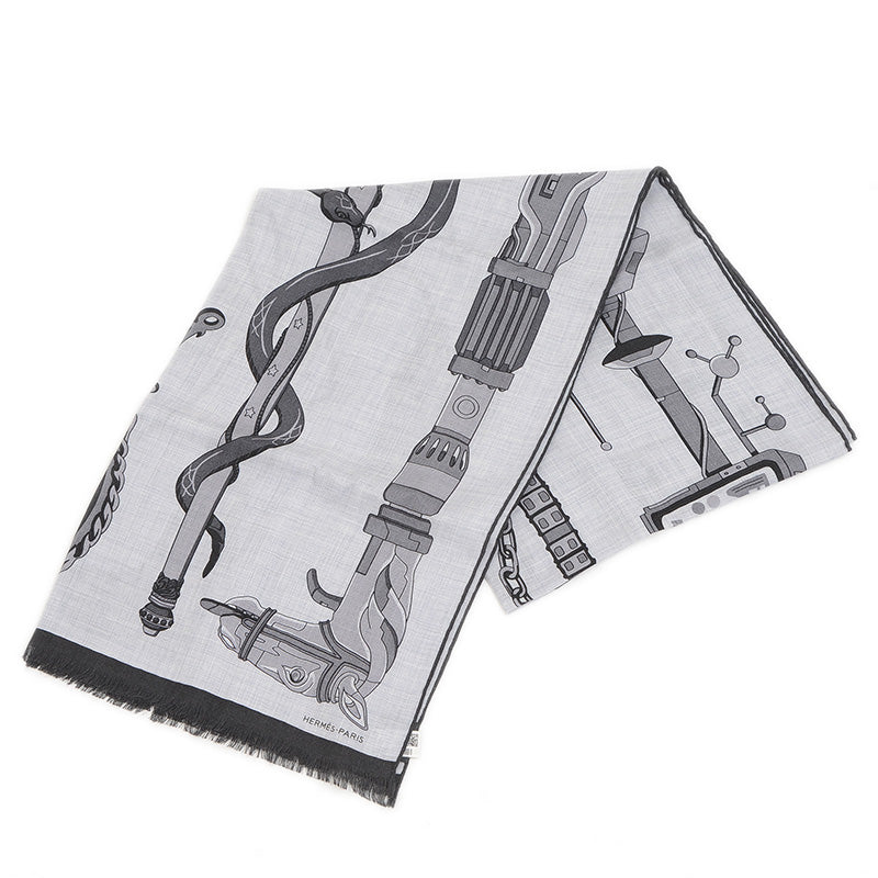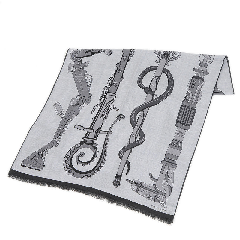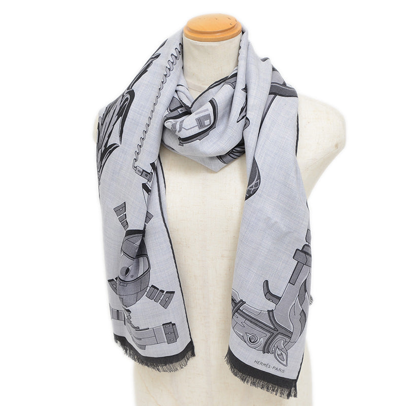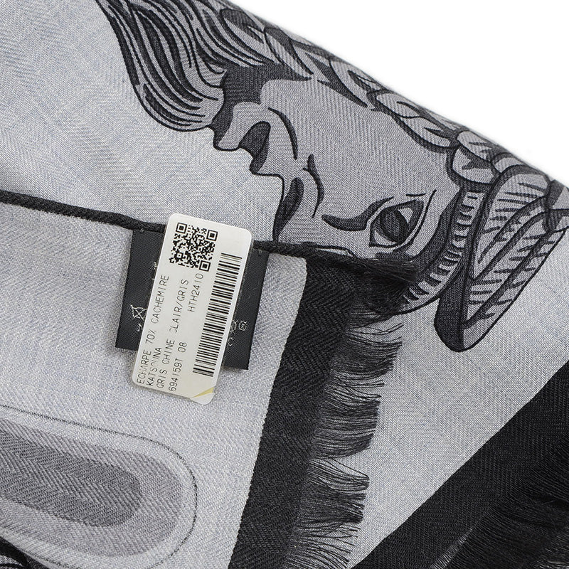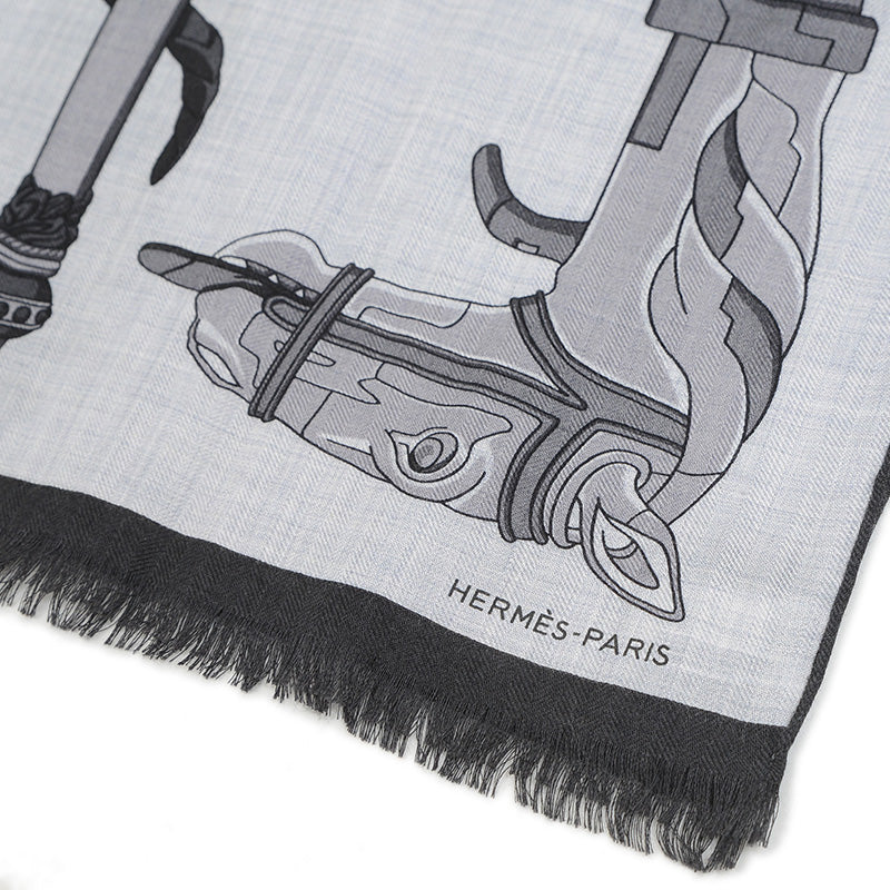 - グリシネクレール(薄い藤色)とグリモワイヤン(中間色のグレー)の組み合わせが上品で洗練された印象を与えます。大判ながらも軽やかで、首元や肩に巻くだけで装いに華やかさと温かみを添える逸品です。