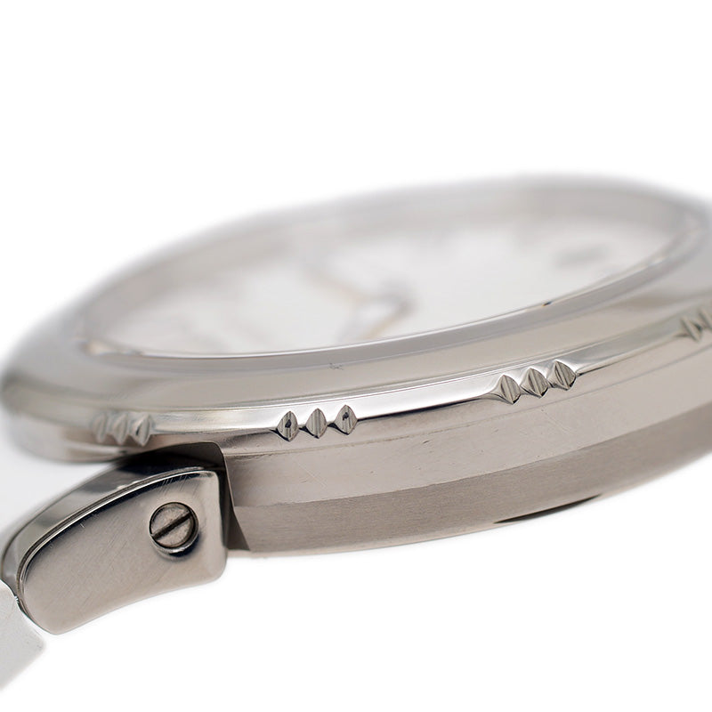 ガラスのフチに小キズが数ヶ所あり、ケースに磨きで取り切れないキズはありますが、新品仕上げ・電池交換済みで良好なコンディションです。