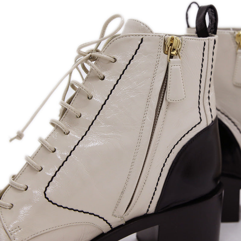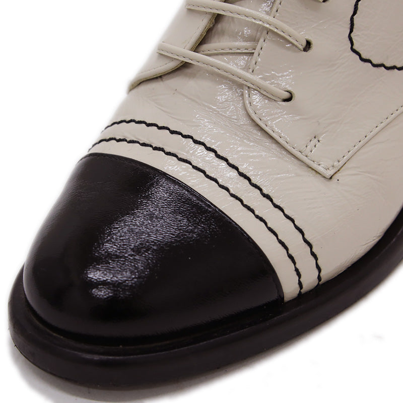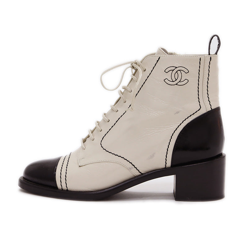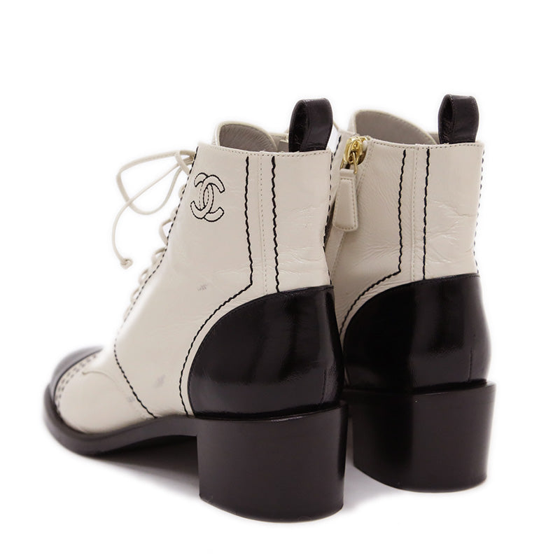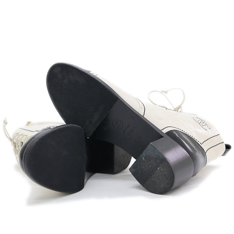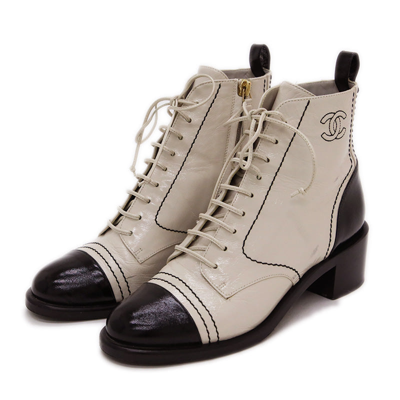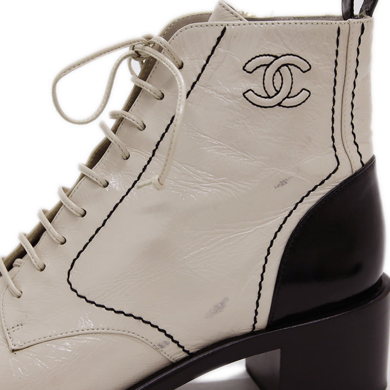 ショートブーツ ココマーク パテントレザー アイボリー/ブラック #36.5 G34643 ブーツ